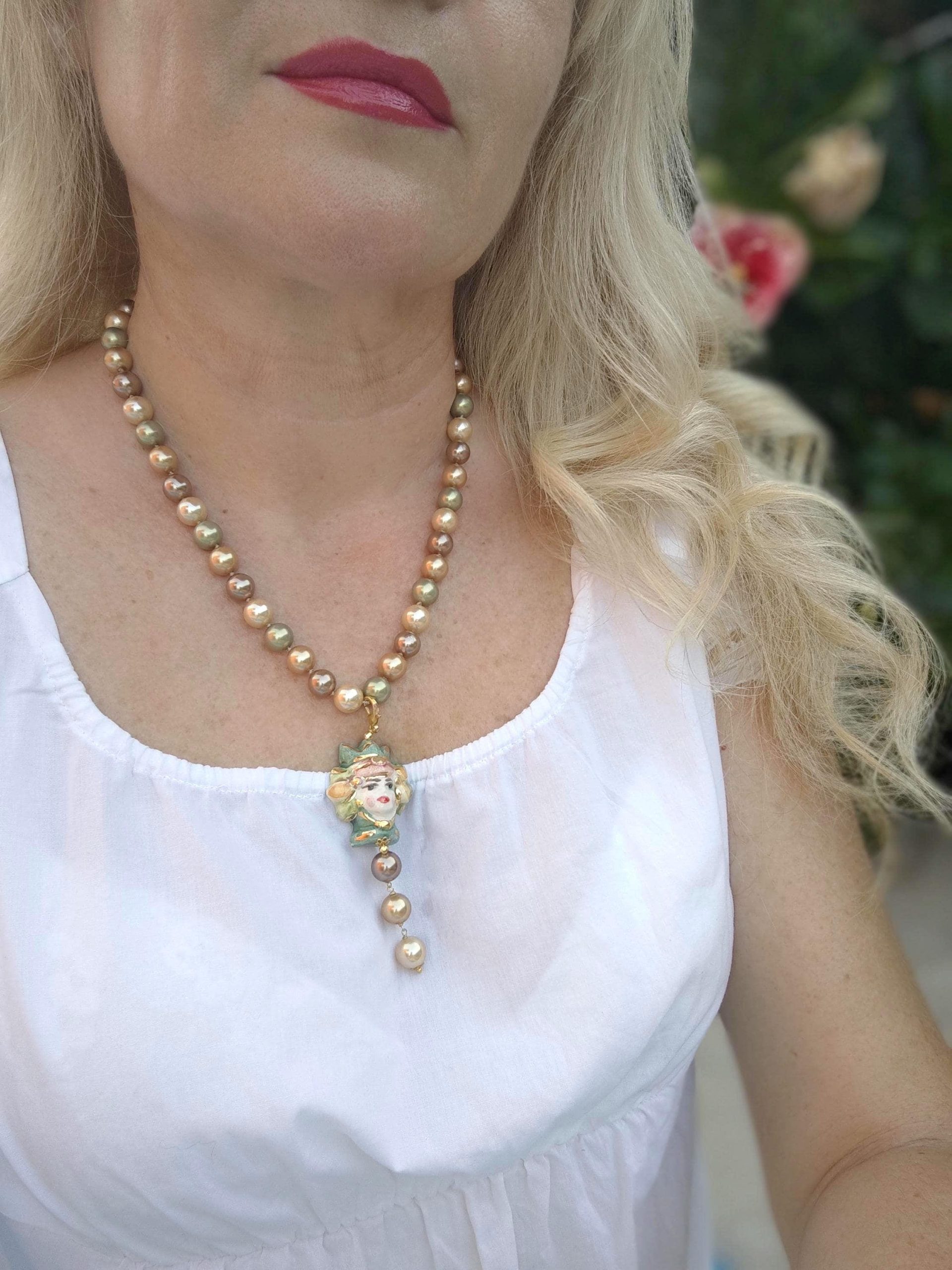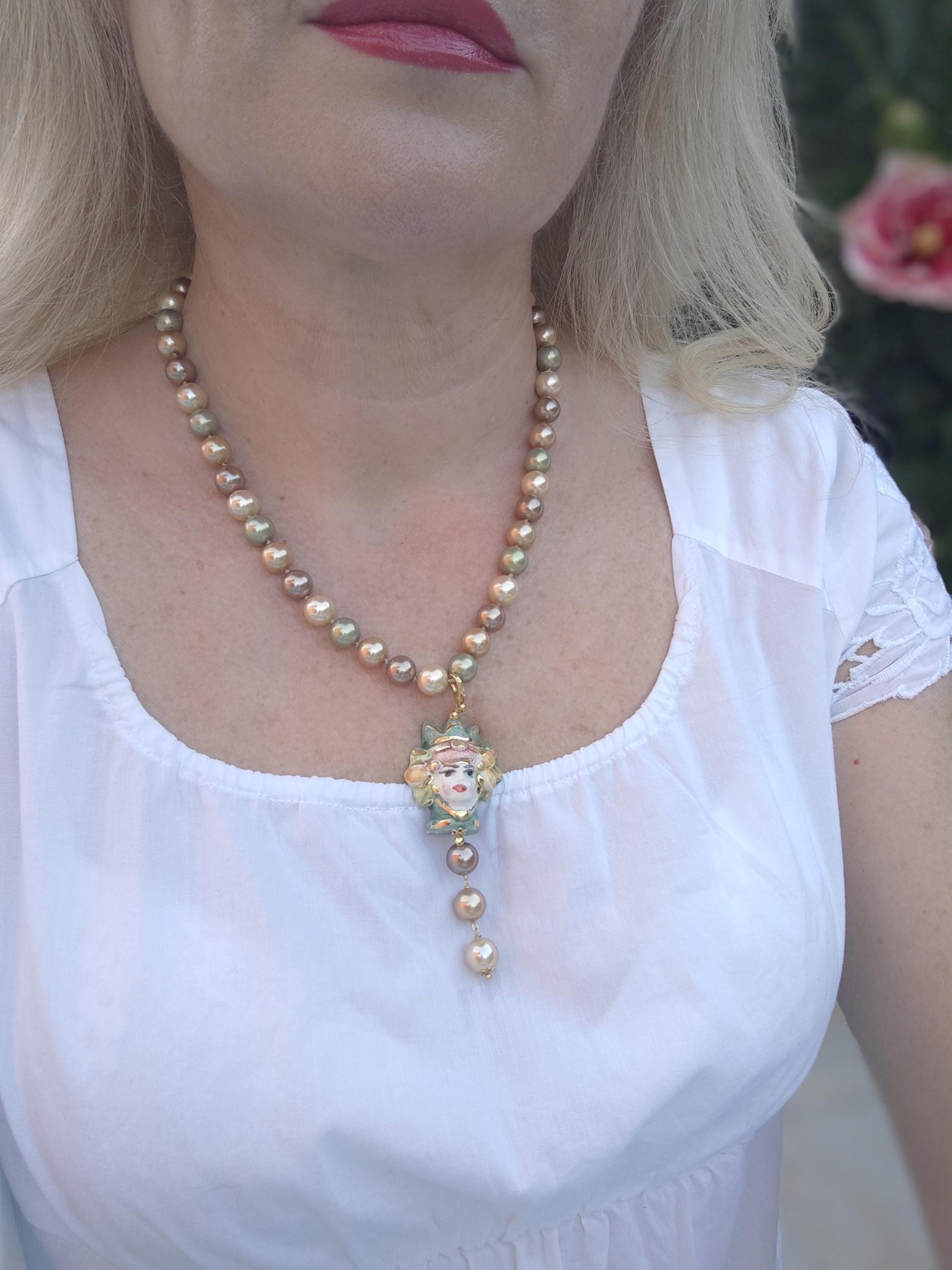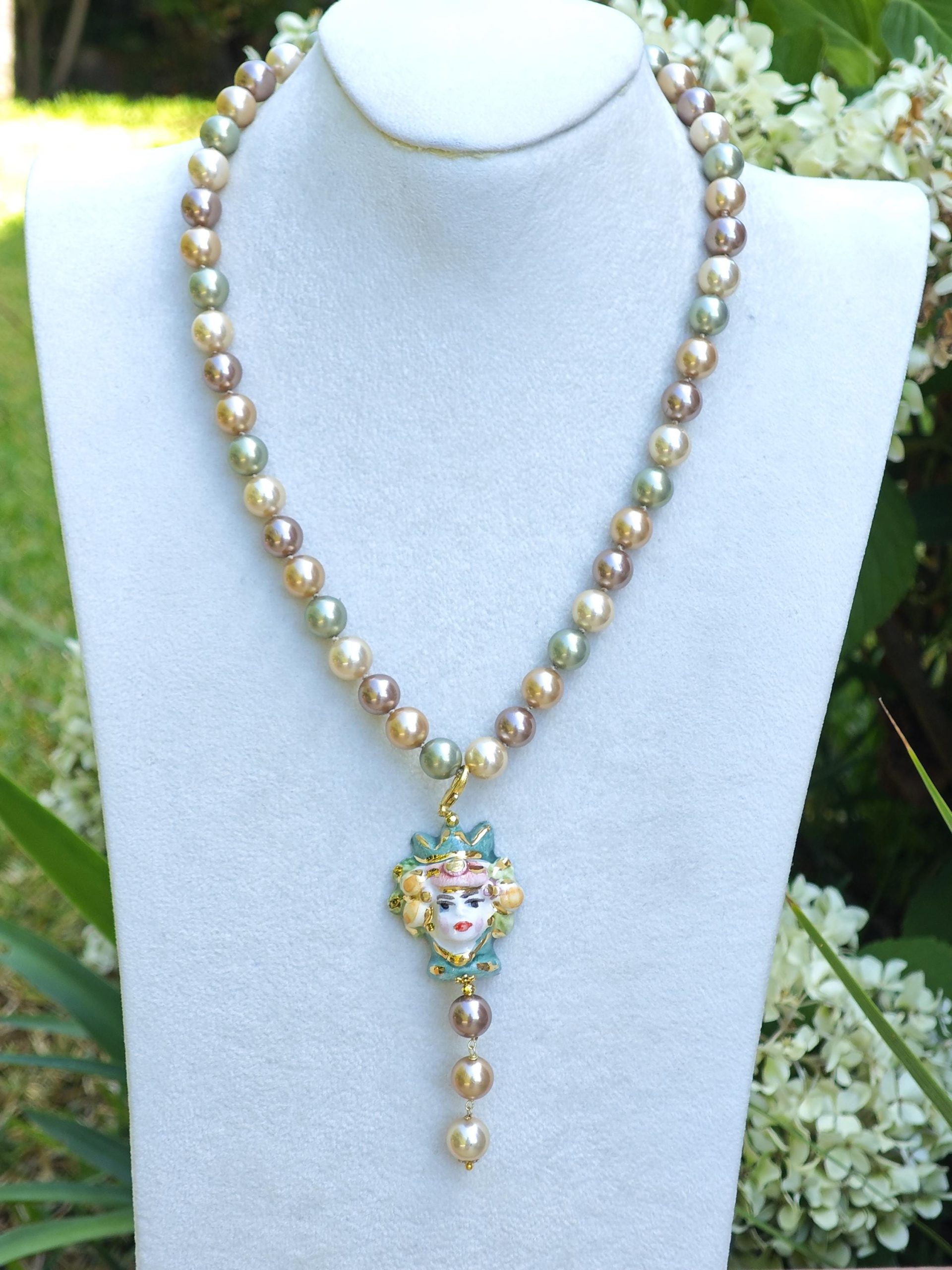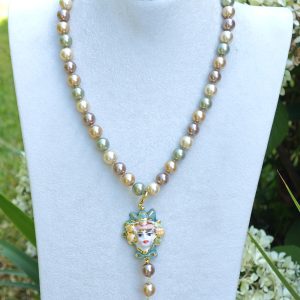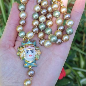 Categoria: Collane Siciliane Tag: ceramica_Caltagirone, collana_girocollo, collana_perle, collana_siciliana, collana_testa_moro, perle_Majorca, perle_marroni, perle_verdi