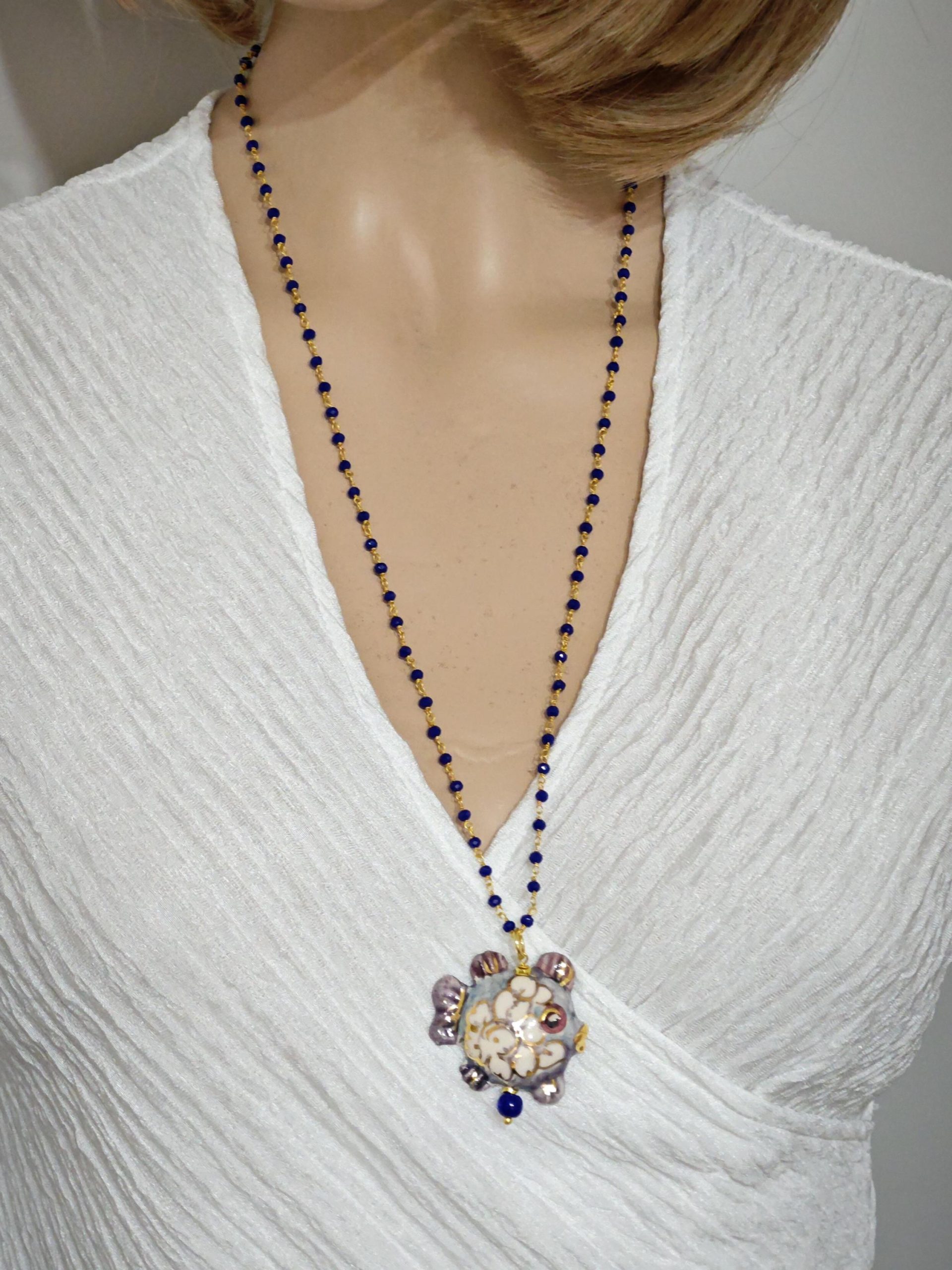 Categoria: Collane Siciliane Tag: collana_barocca, collana_blu, collana_Caltagirone, collana_cristalli, collana_handmade, collana_pendente, collana_pesce, collana_rosario, collana_siciliana