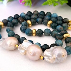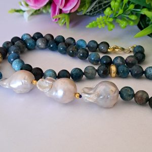 Categoria: Collane Corallo e Pietre Tag: collana_apatite, collana_blu, collana_estiva, collana_girocollo, collana_moderna, collana_perle, collana_pietre_dure, perle_barocche, perle_bianche