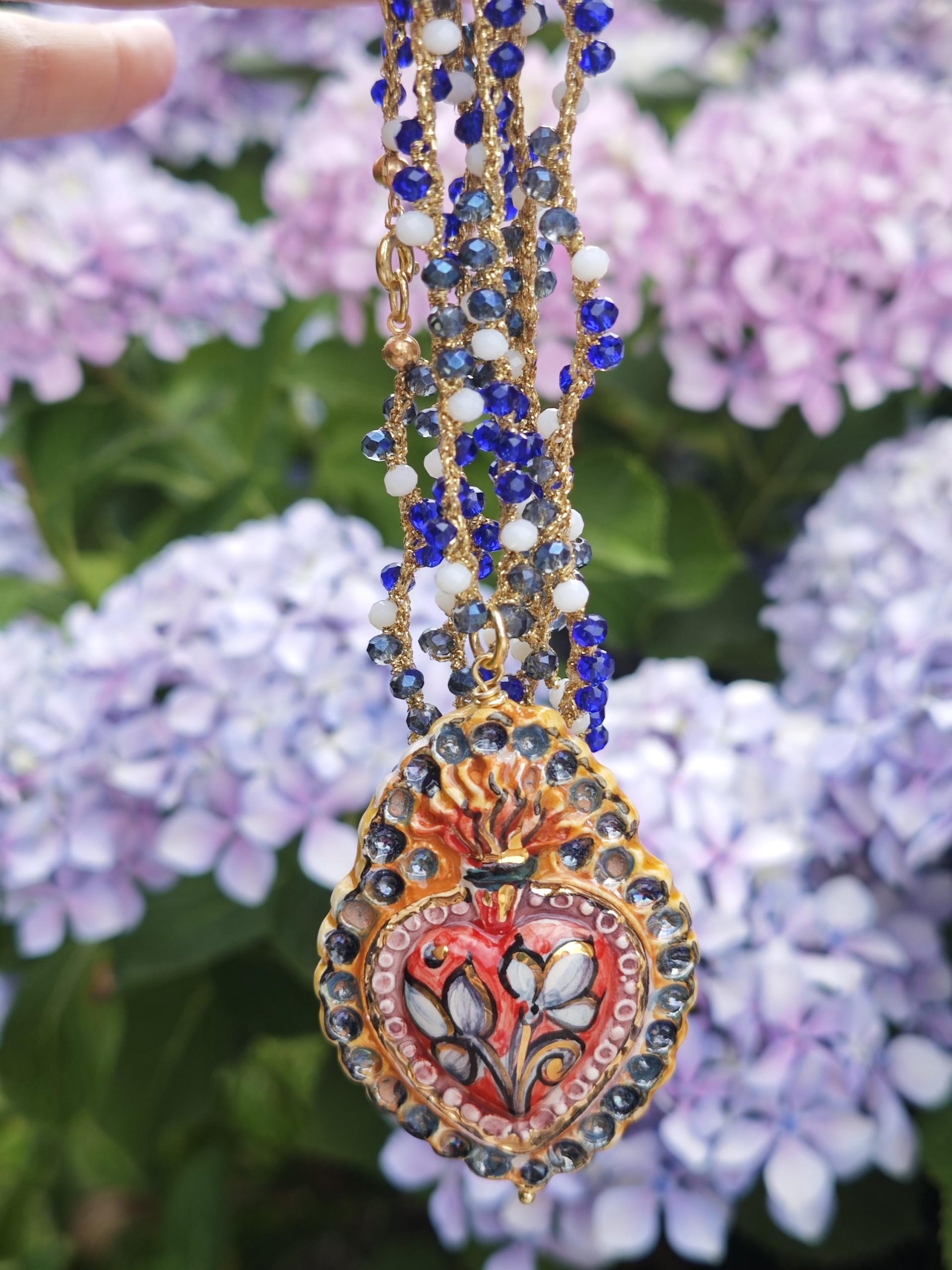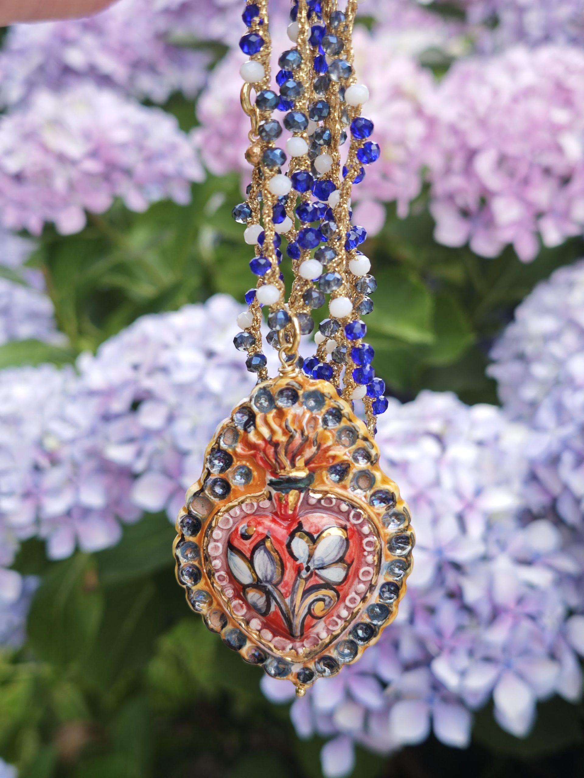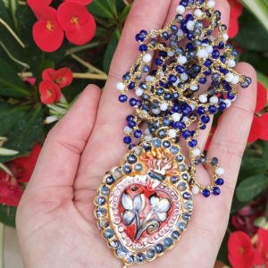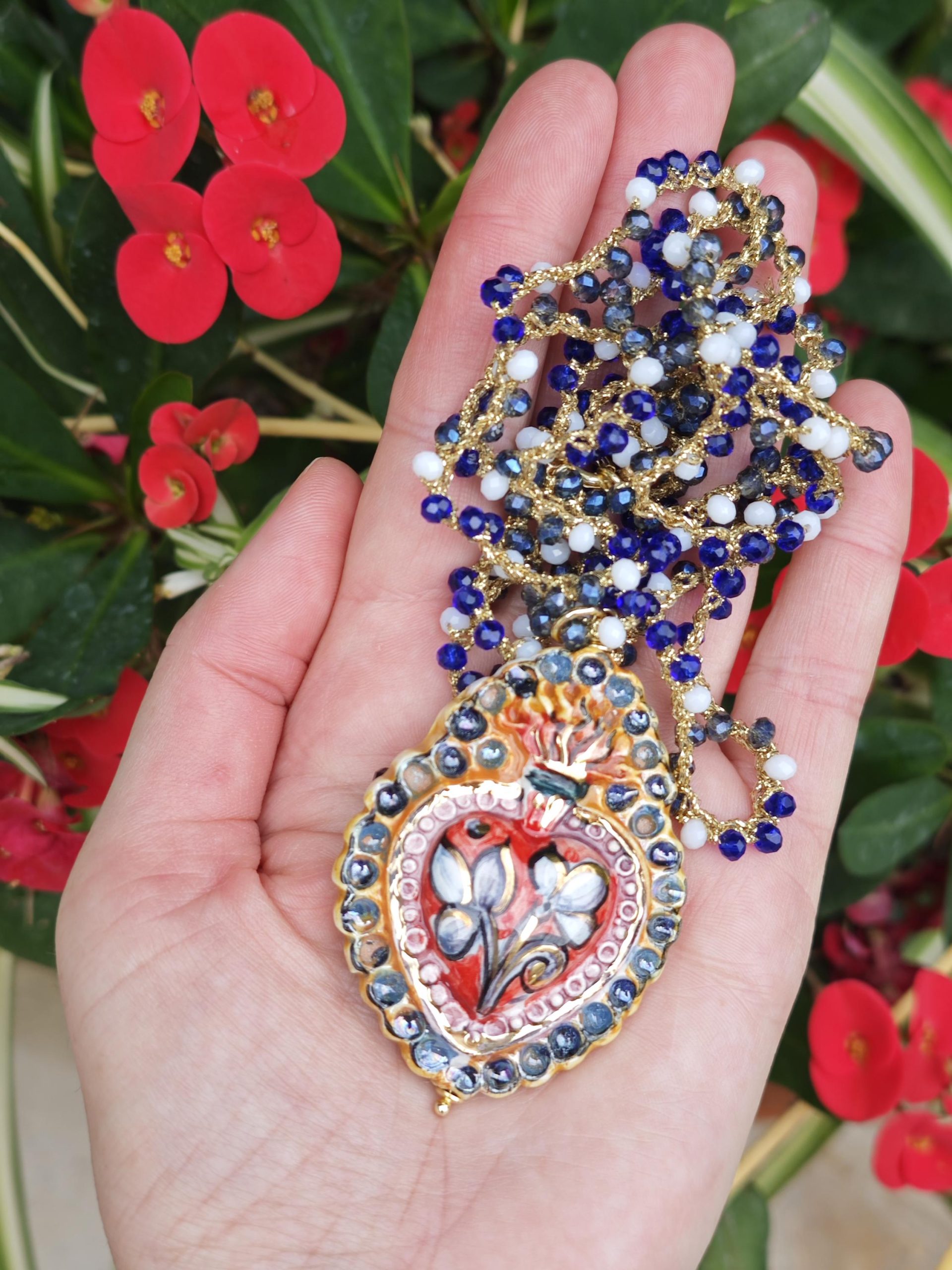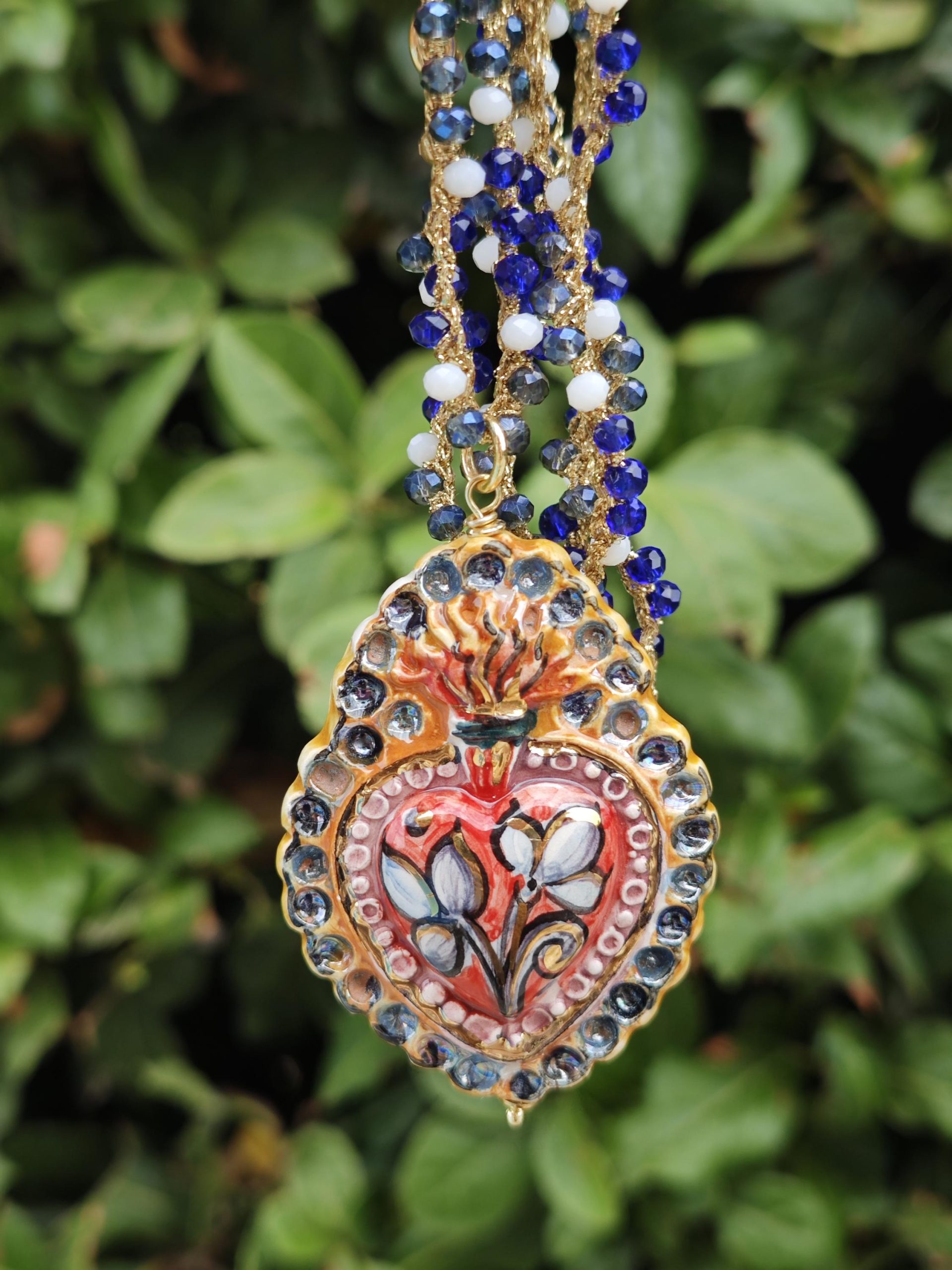 Collana Sacro Cuore ceramica di Caltagirone e cristalli , collana rosario siciliana