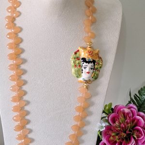 Collana  ceramica Caltagirone, collana pietre quarzo, collana testa di moro siciliana