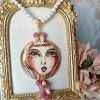 Collana a corda con testa di moro in ceramica Caltagirone e perle bianche, collana siciliana