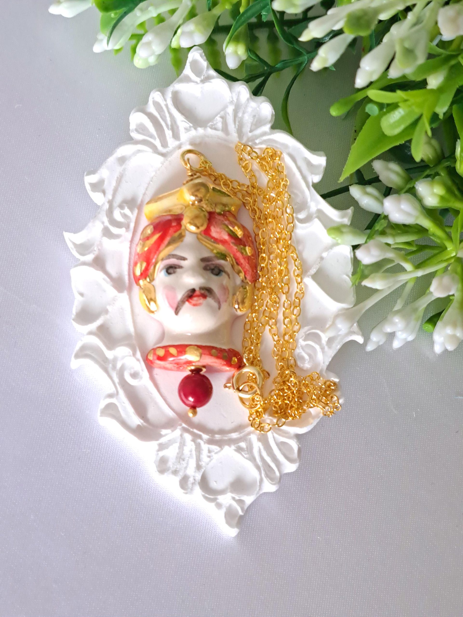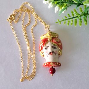 Collana testa di moro in ceramica di Caltagirone , collana siciliana
