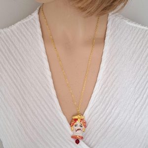Categoria: Collane Siciliane Tag: ceramica_Caltagirone, collana_Caltagirone, collana_handmade, collana_pendente, collana_perla, collana_Sicilia, collana_siciliana, collana_testa_moro, perle_bianche