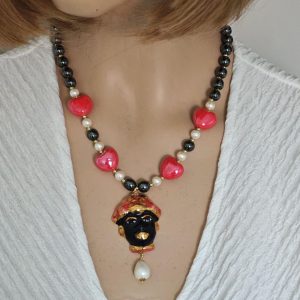 Categoria: Collane Siciliane Tag: ceramica_Caltagirone, colana_testa_moro, collana_Caltagirone, collana_cuore, collana_ematite, collana_girocollo, collana_nera, collana_pendente, collana_perle, collana_pietre_dure, collana_siciliana, perle_bianche, regalo_per_lei