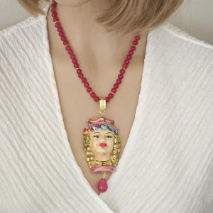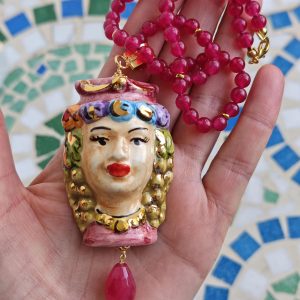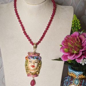 Categoria: Collane Siciliane Tag: agata_rosa, ceramica_Caltagirone, collana_agata, collana_ceramica, collana_pietre, collana_rosa, collana_Sicilia, collana_siciliana, collana_testa_moro, rosa_fucsia
