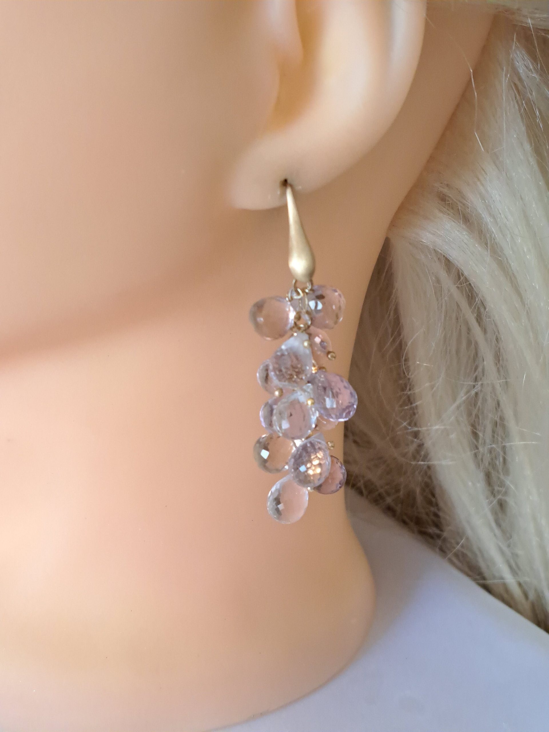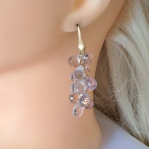 Orecchini pendenti a grappolo con pietre semipreziose sfaccettate briolette in ametrino naturale non trattate.
