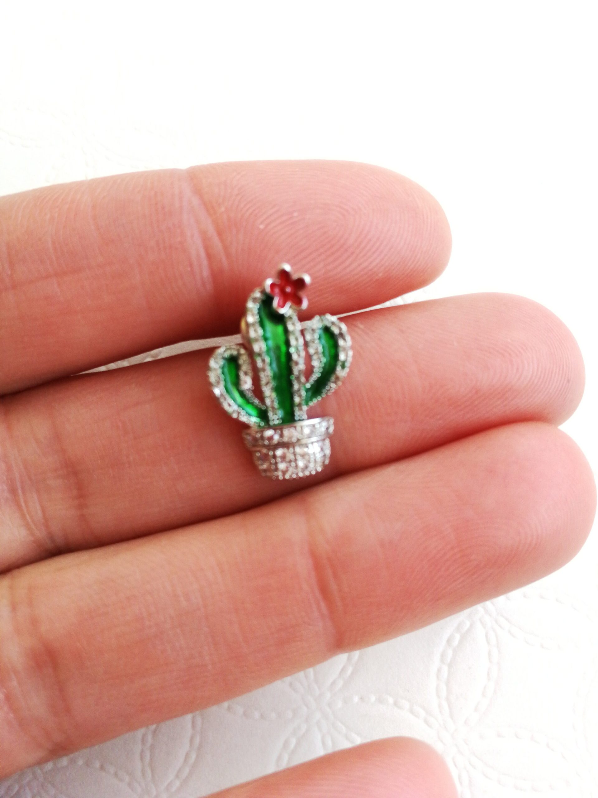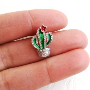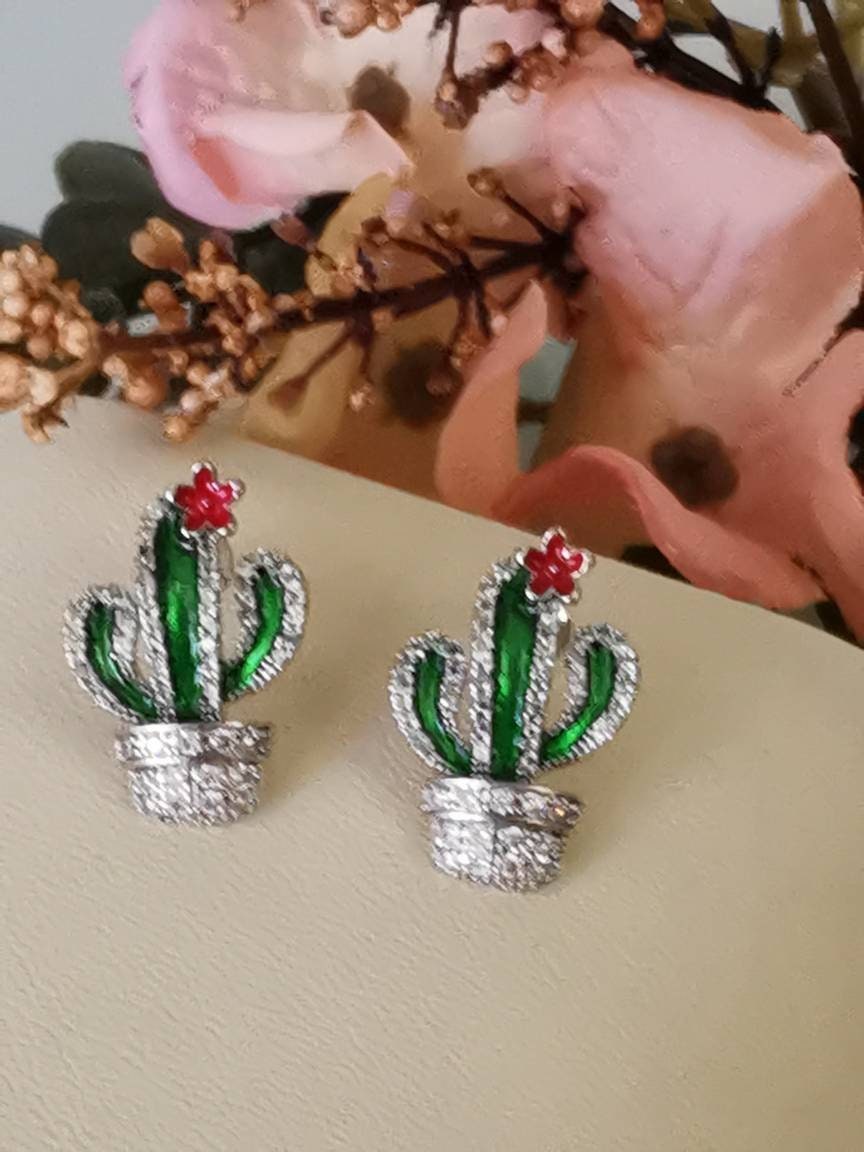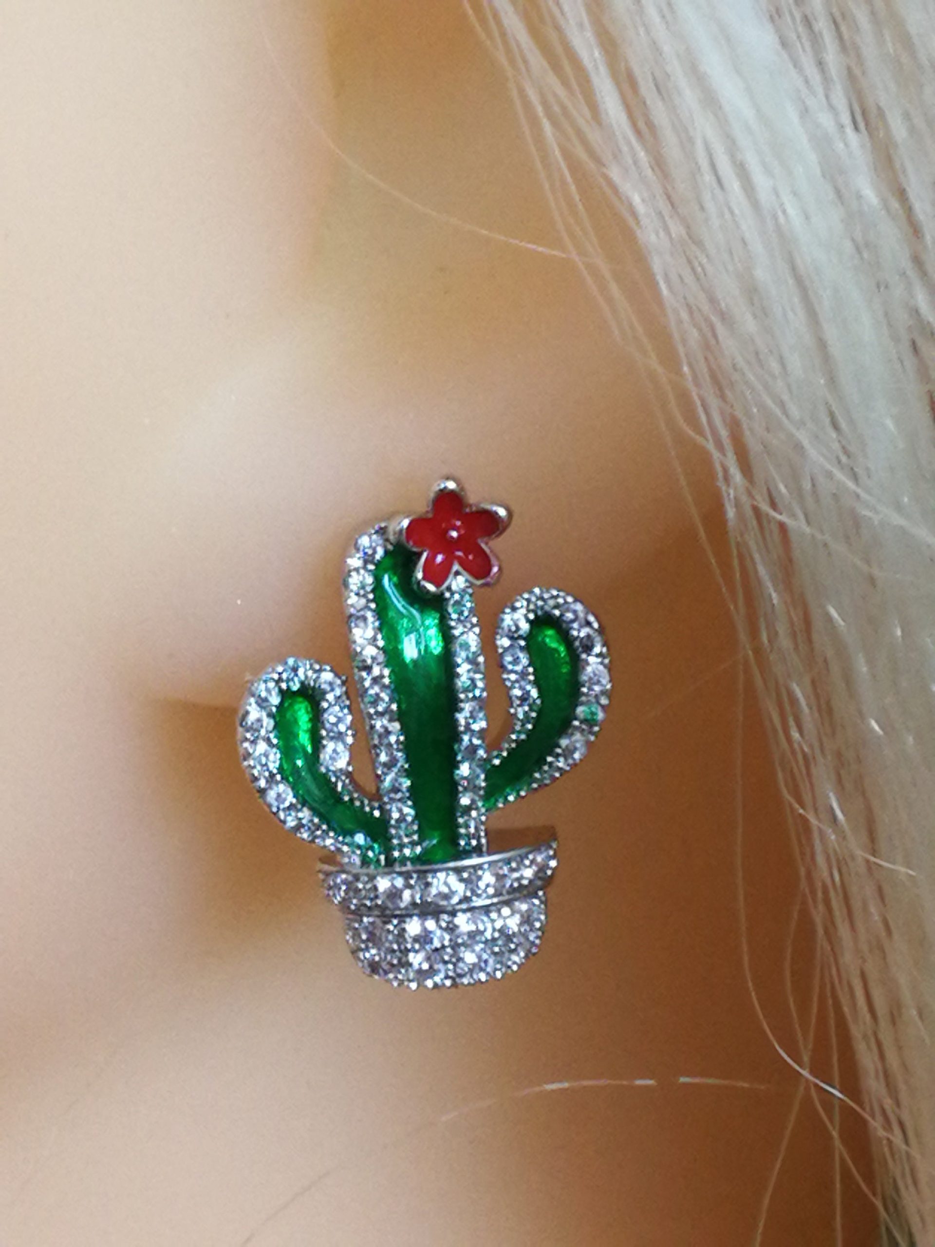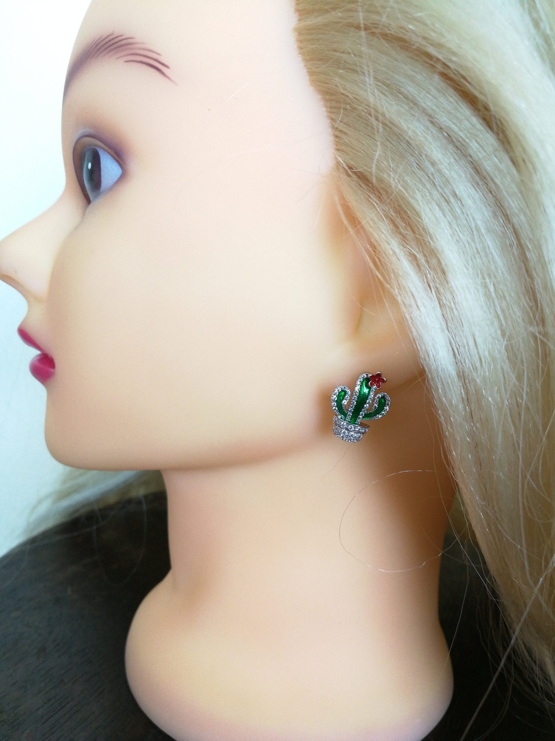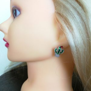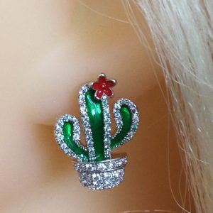 Orecchini cactus in acciaio anallergico smaltato con zirconi bianchi.