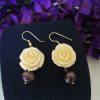 Orecchini rosa rossa e argento. Corallo composto lavorato a forma di rosa.Orecchini argento.
