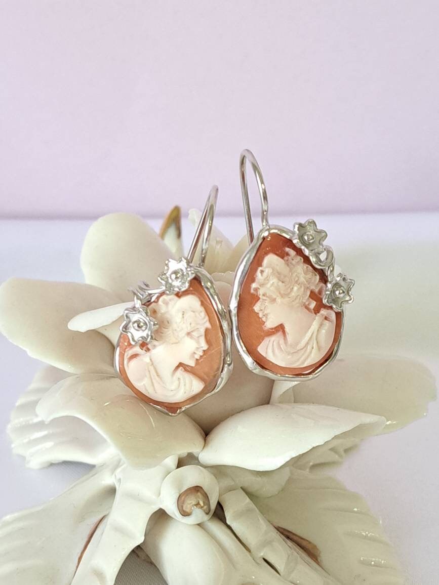 Orecchini cammeo conchiglia, orecchini argento 925, gioielli italiani