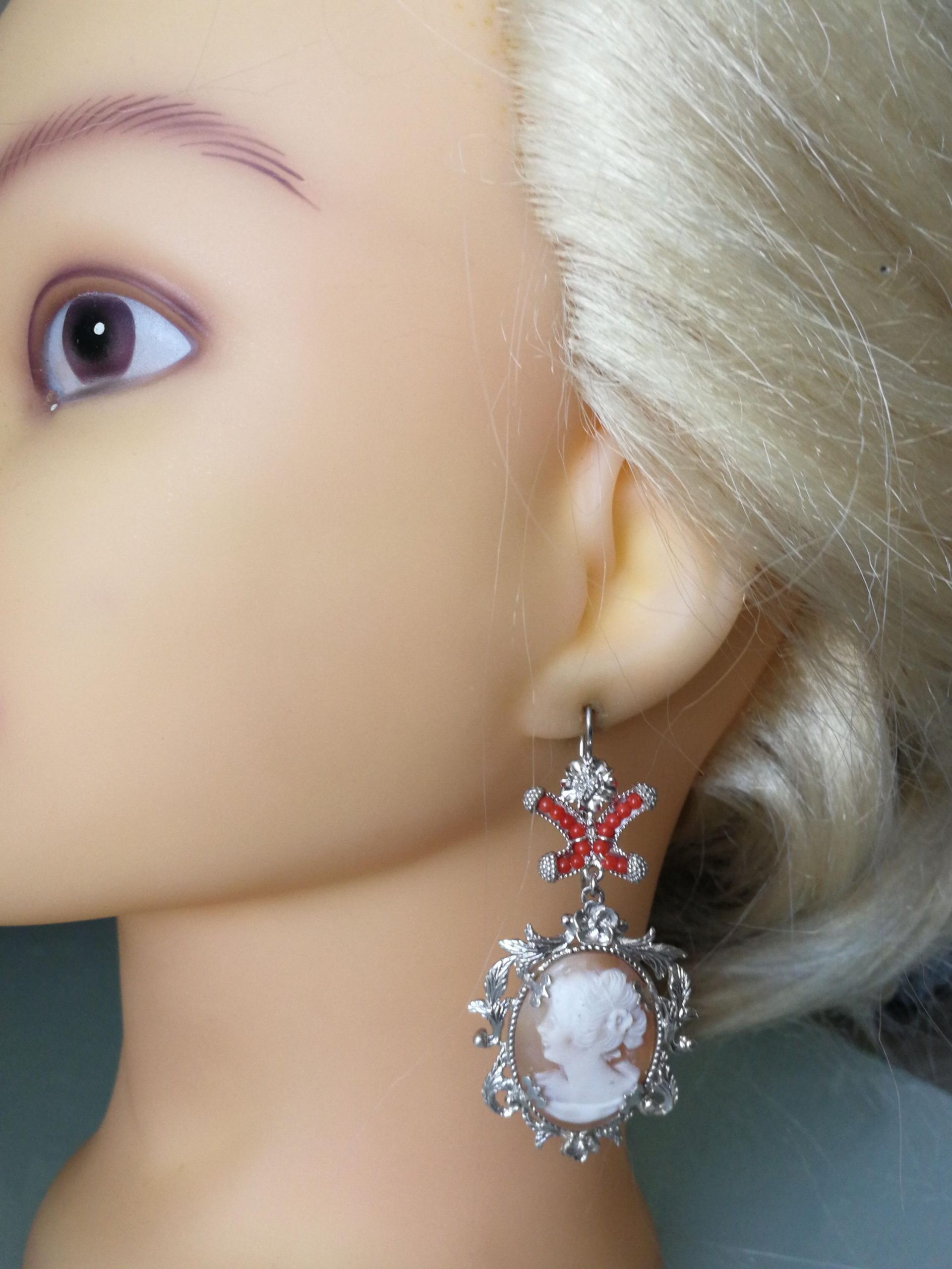 Orecchini cammeo e gocce pasta di avorio imitazione , orecchini argento 925 , gioielli italiani
