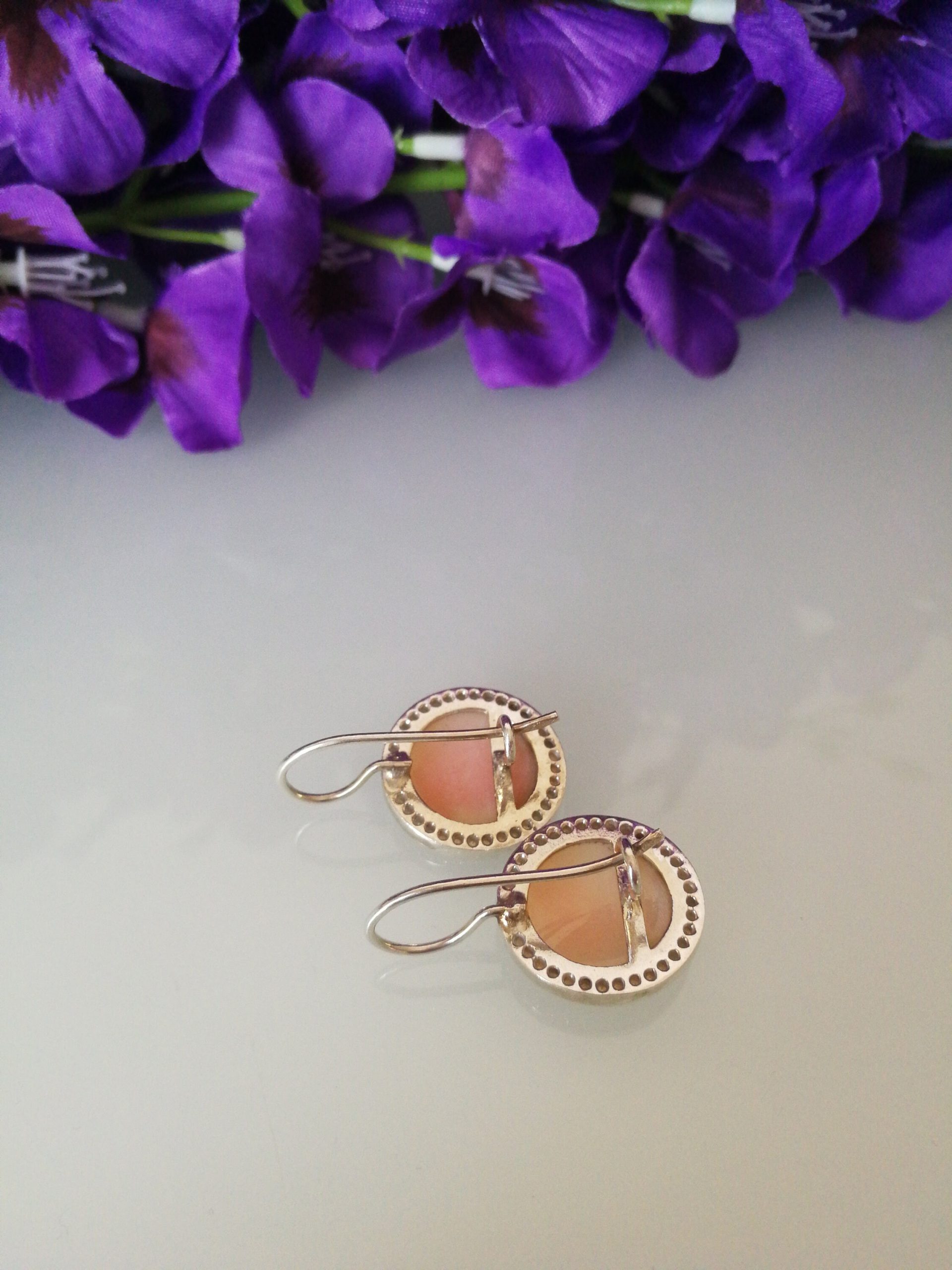 Orecchini  cammeo conchiglia sardonica, perle pasta di corallo rosa , orecchini argento 925, gioielli italiani