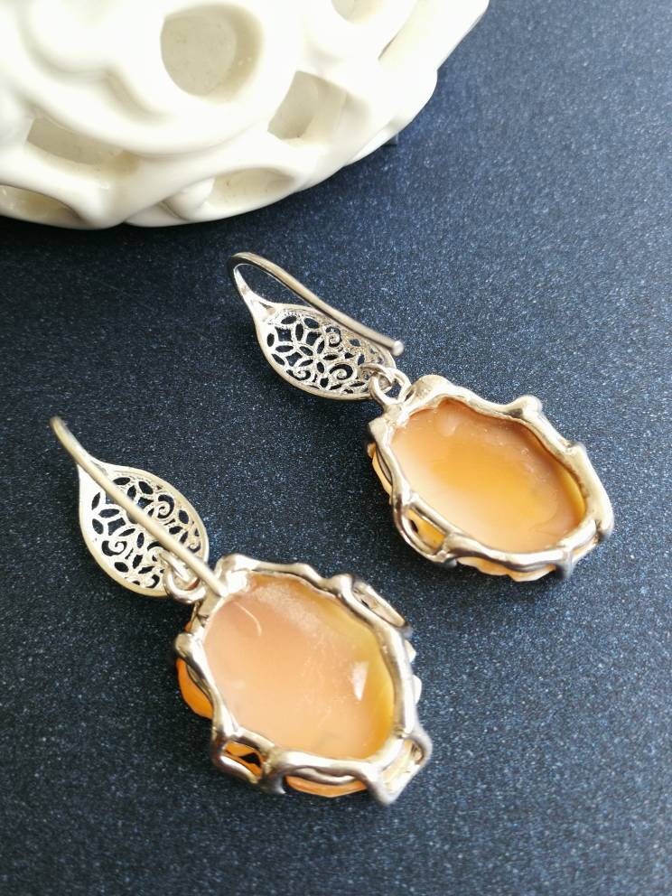 Orecchini cammeo conchiglia originale. Orecchini argento.Cammeo Sardonico.