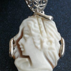 Orecchini eleganti con cammeo conchiglia originale che raffigura volto di donna ,montatura in argento 925, lavorazione a mano artigianale. Misurano 2×1,5 cm