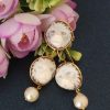 Orecchini cammeo corallo rosa con perle bianche barocche , orecchini argento 925 , gioielli italiani