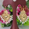 Orecchini Art Deco con pietre dure radice di rubino e fiori ottone dorato