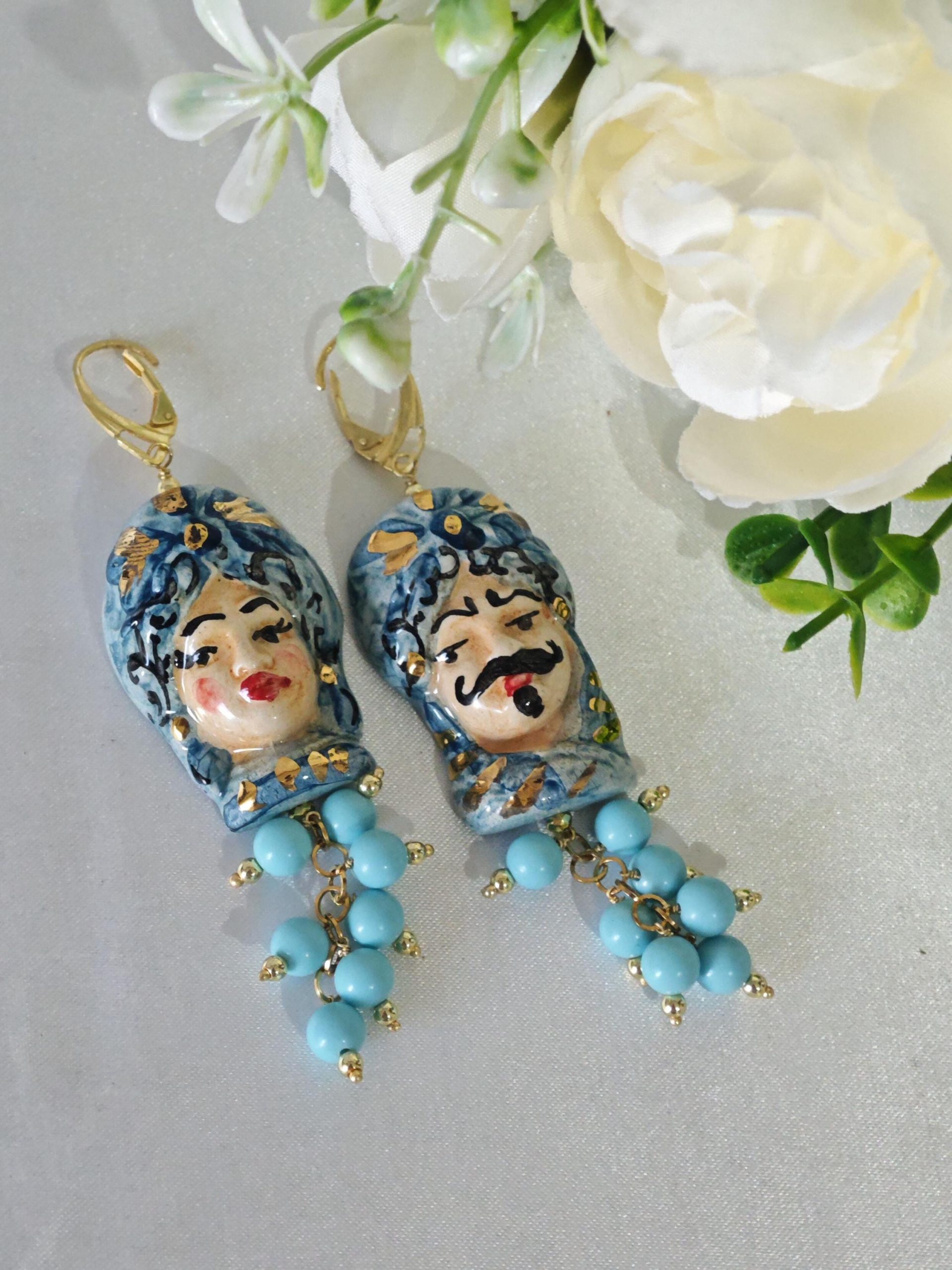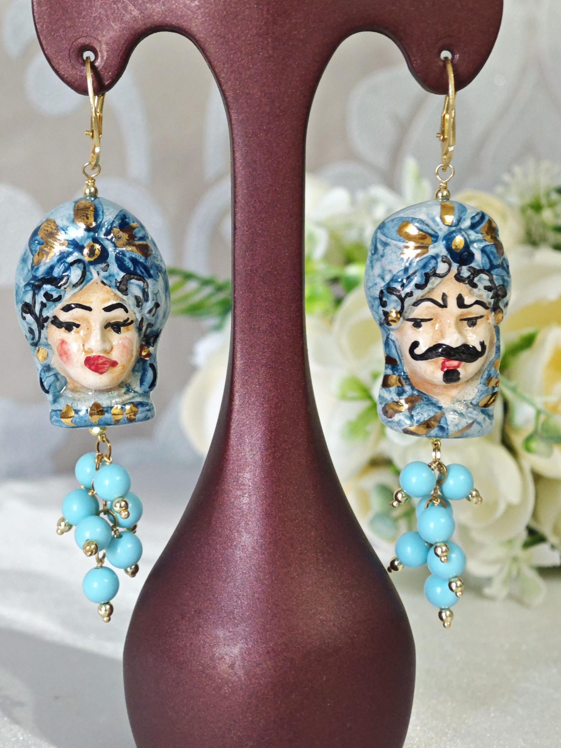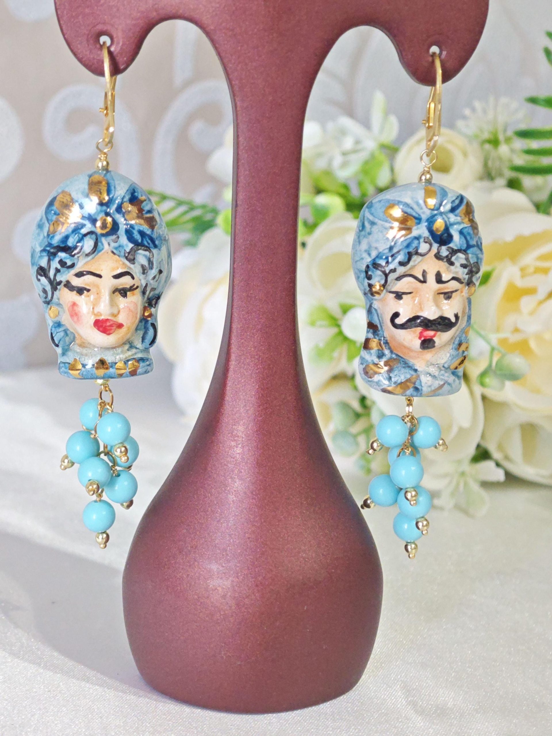 Orecchini ceramica Caltagirone, orecchini pasta di turchese , orecchini teste di moro siciliani
