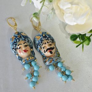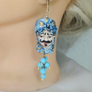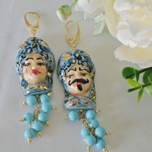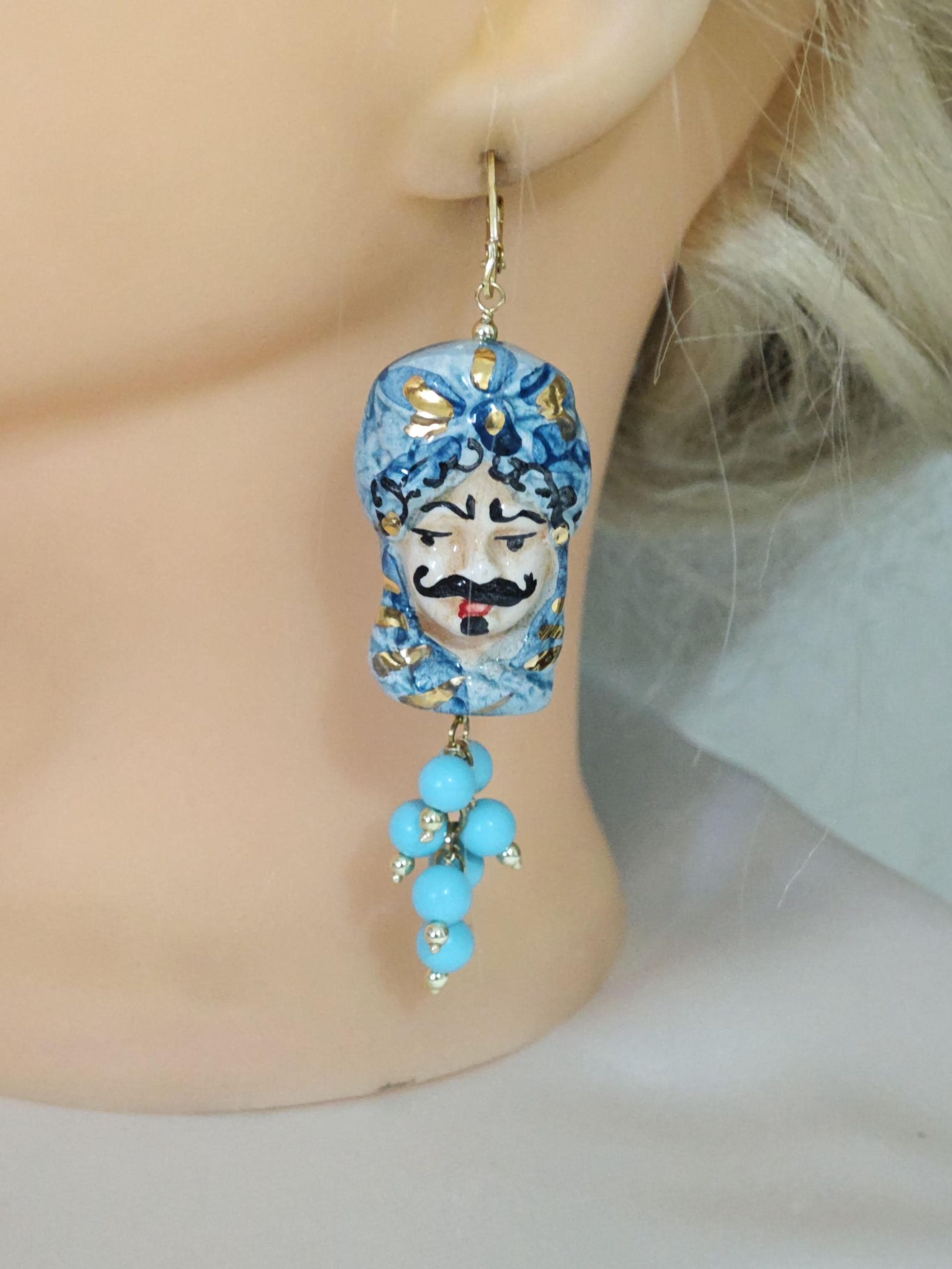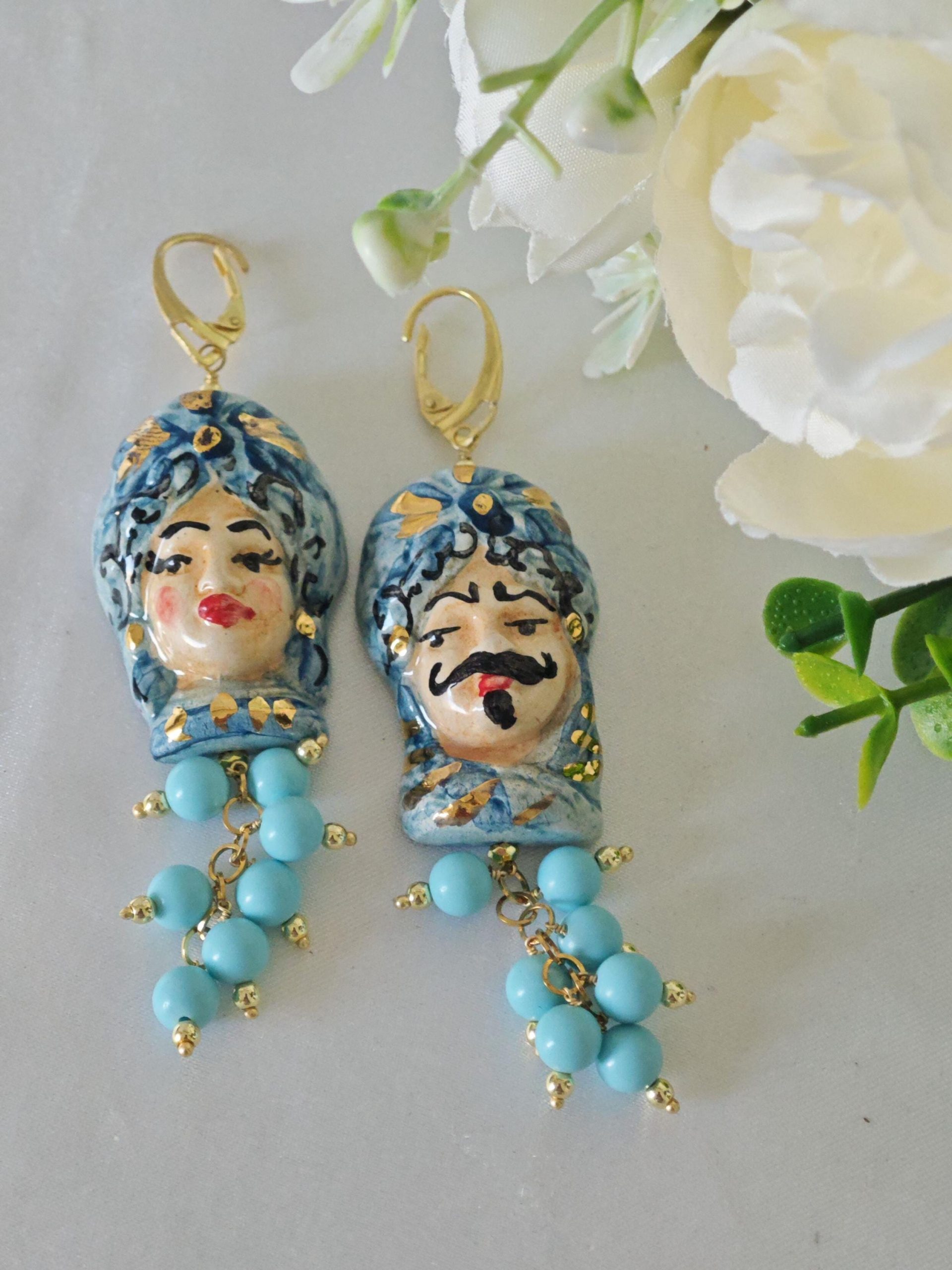 Orecchini ceramica Caltagirone, orecchini pasta di turchese , orecchini teste di moro siciliani
