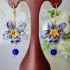 Orecchini limoni ceramica Caltagirone e fiori bianchi , orecchini siciliani