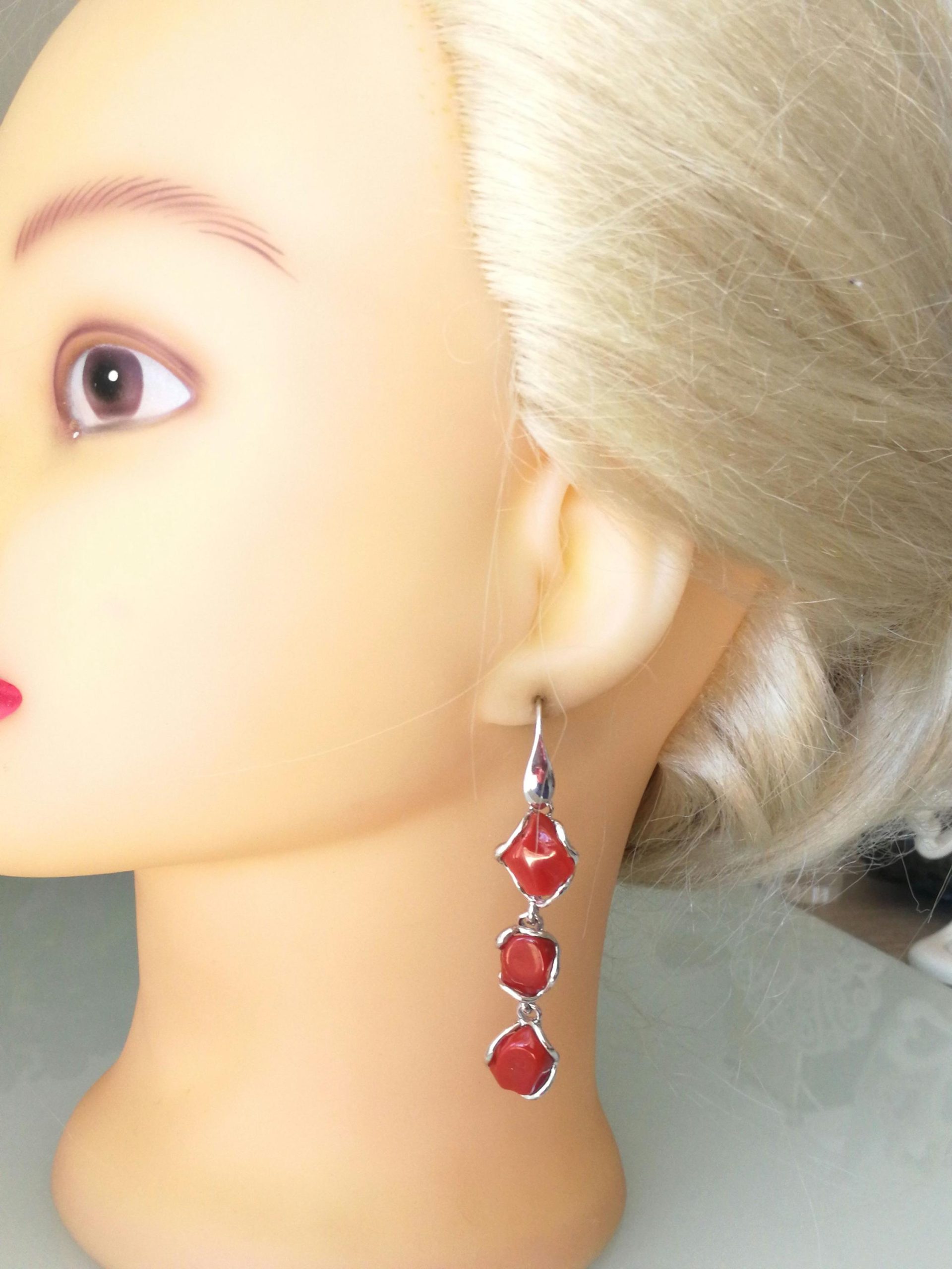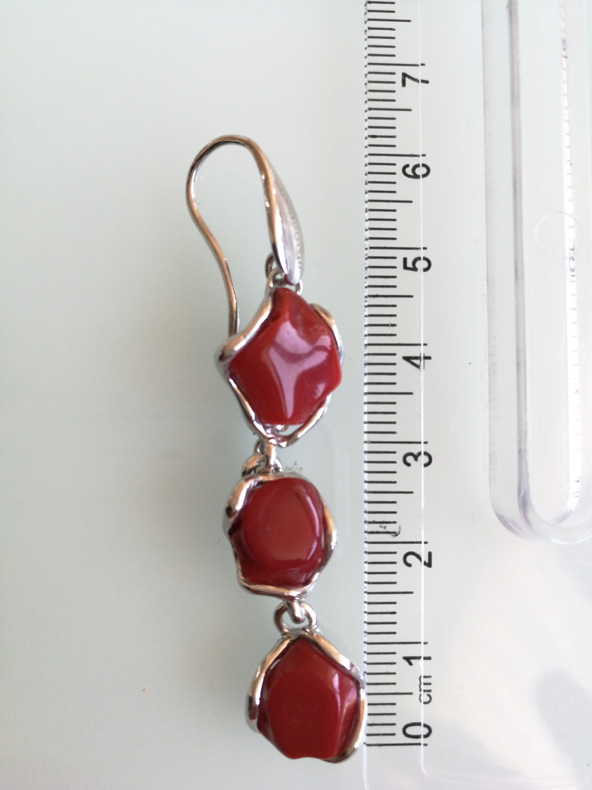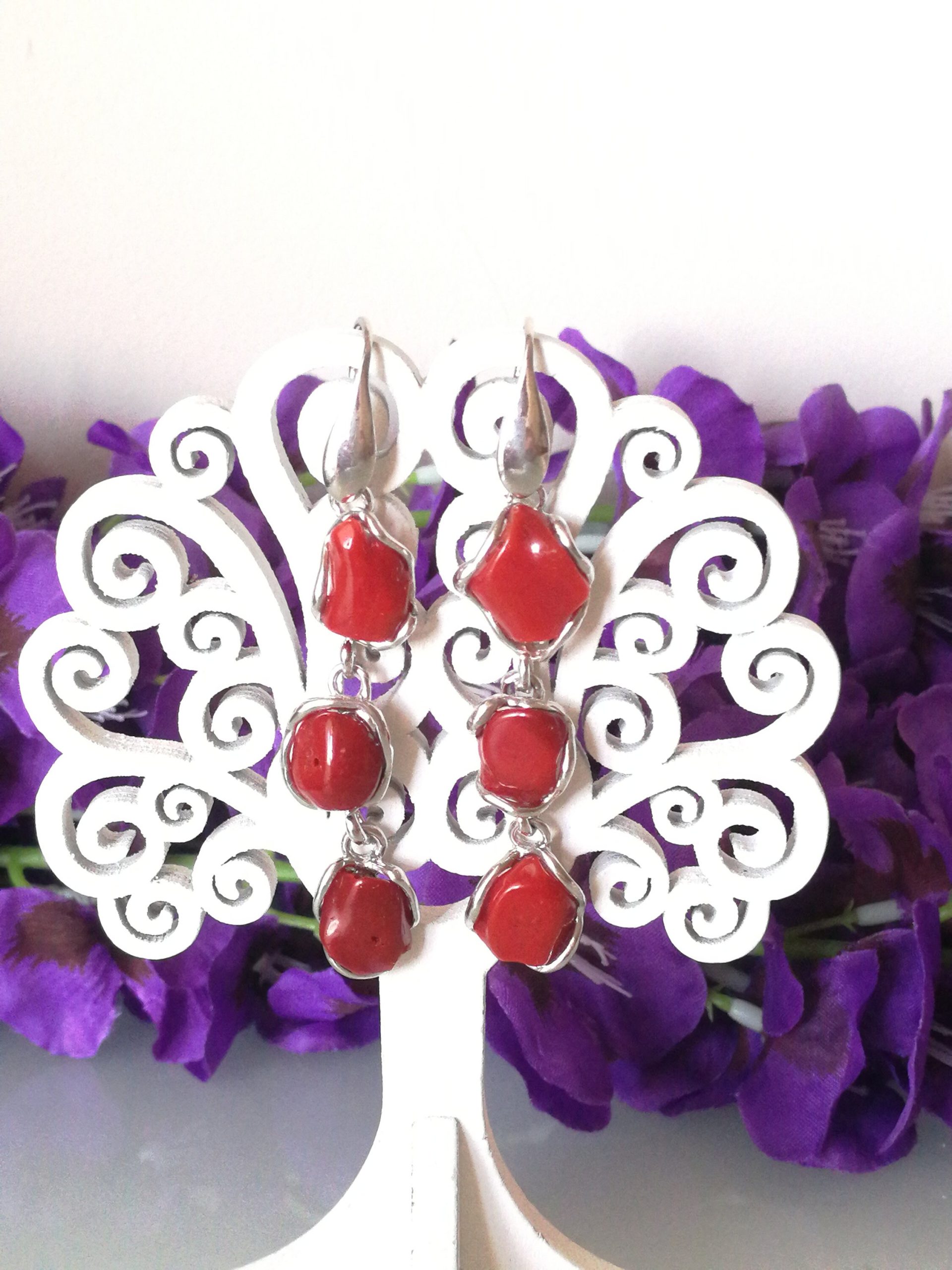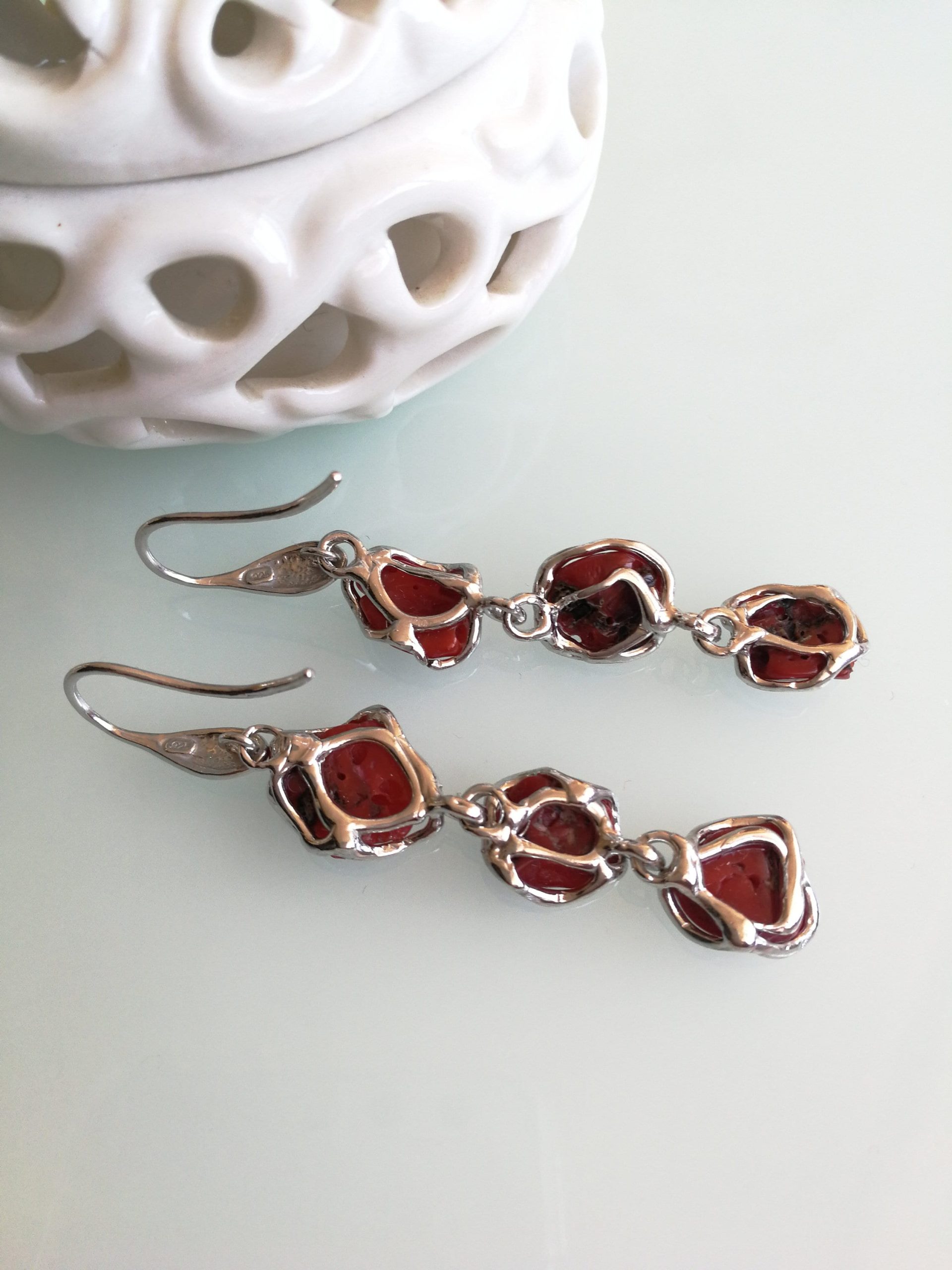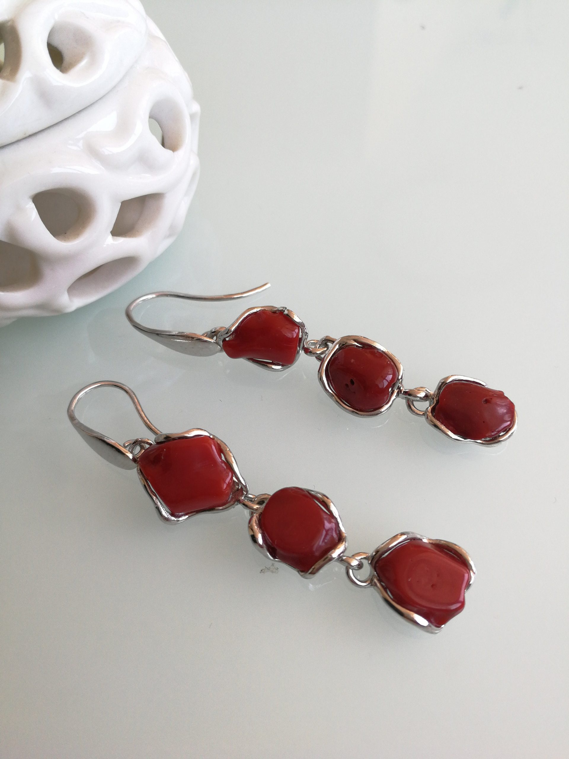 Orecchini corallo rosso del mediterraneo. Orecchini argento.Vero corallo rosso naturale.