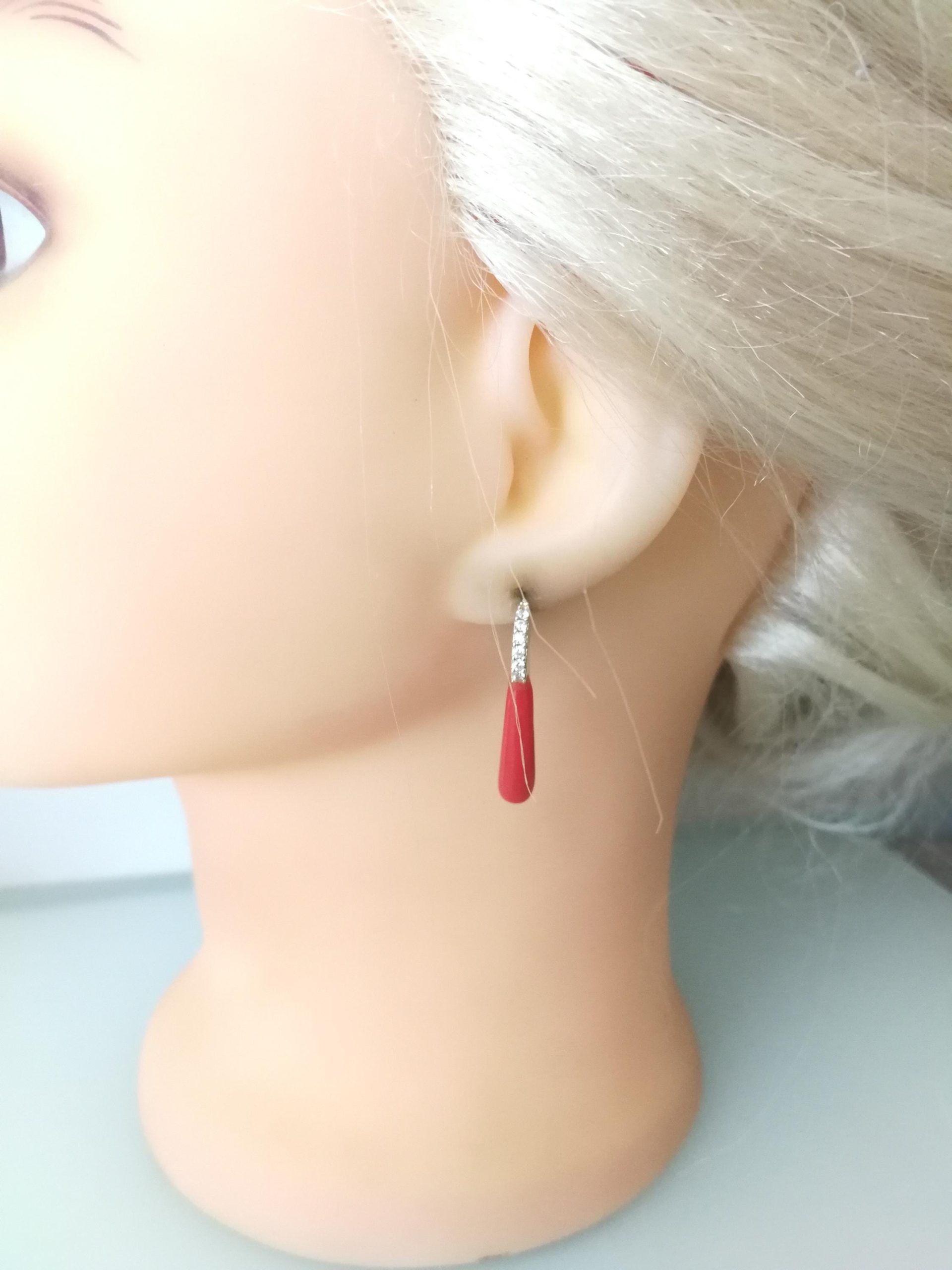 Orecchini corallo rosso del mediterraneo. Orecchini argento.Vero corallo rosso naturale.