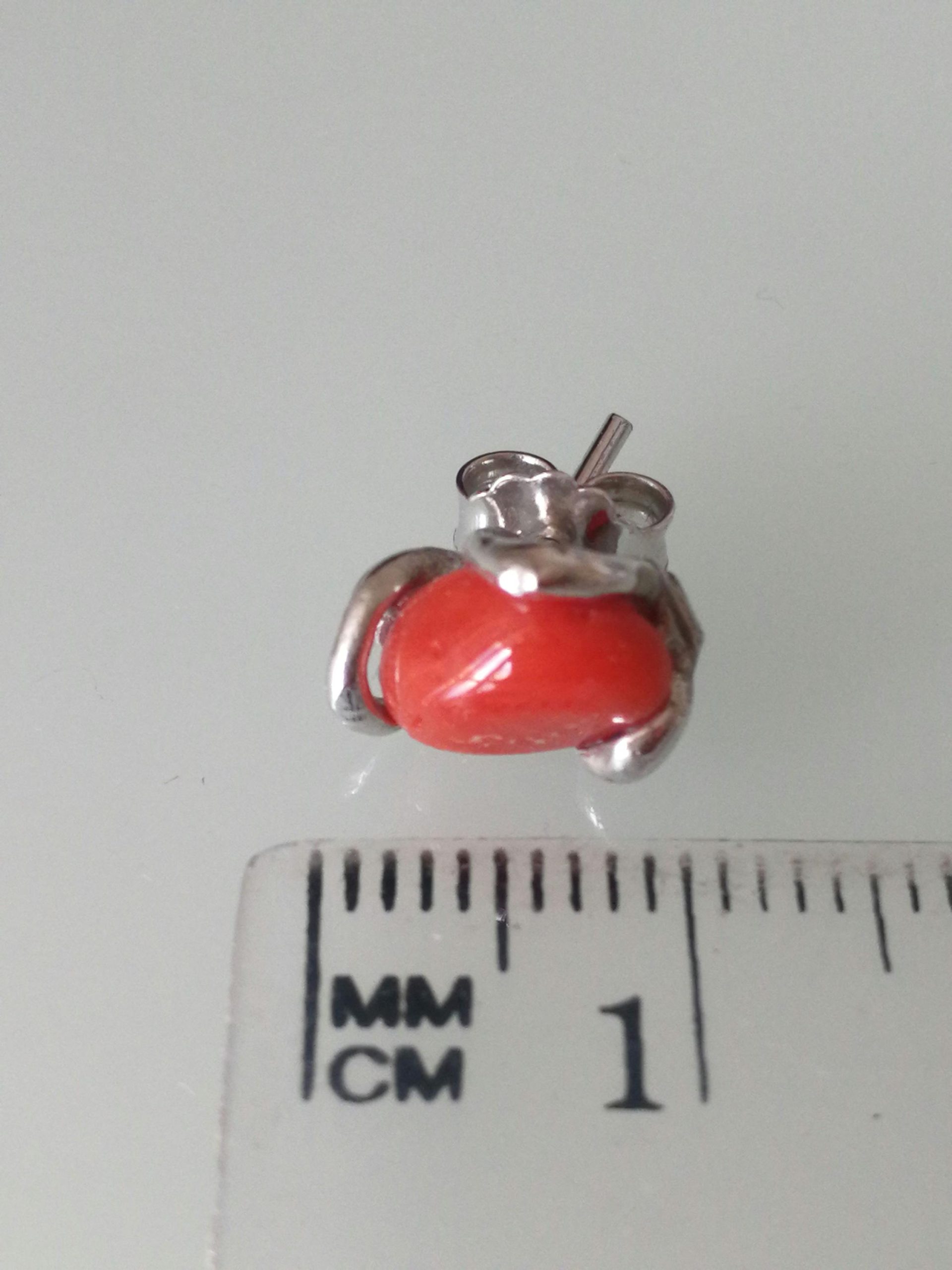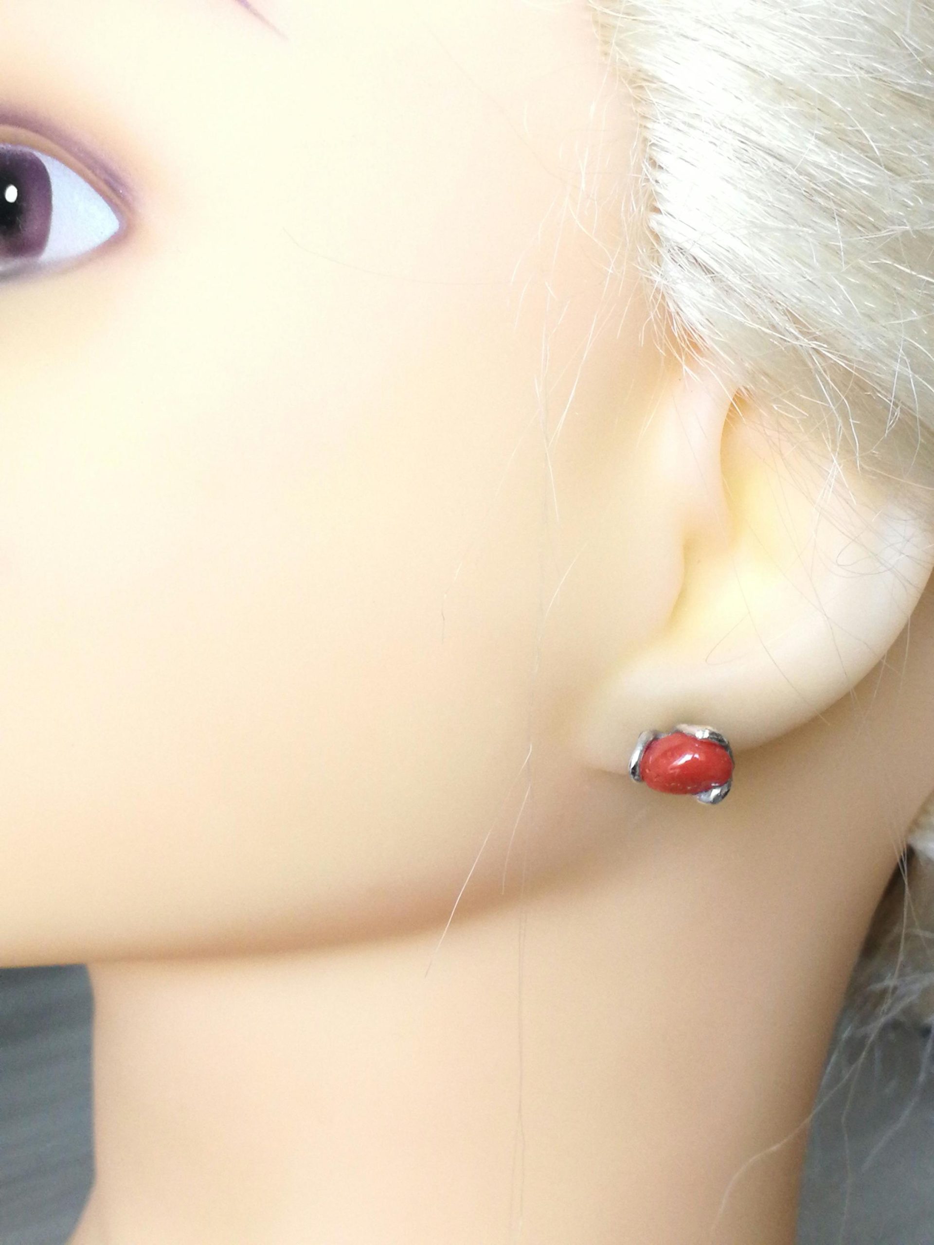 Orecchini corallo originale naturale rosso del mediterraneo, montatura a perno in argento 925 . Misurano 1 cm/ 0,5 inch . Adatti anche per bambina.