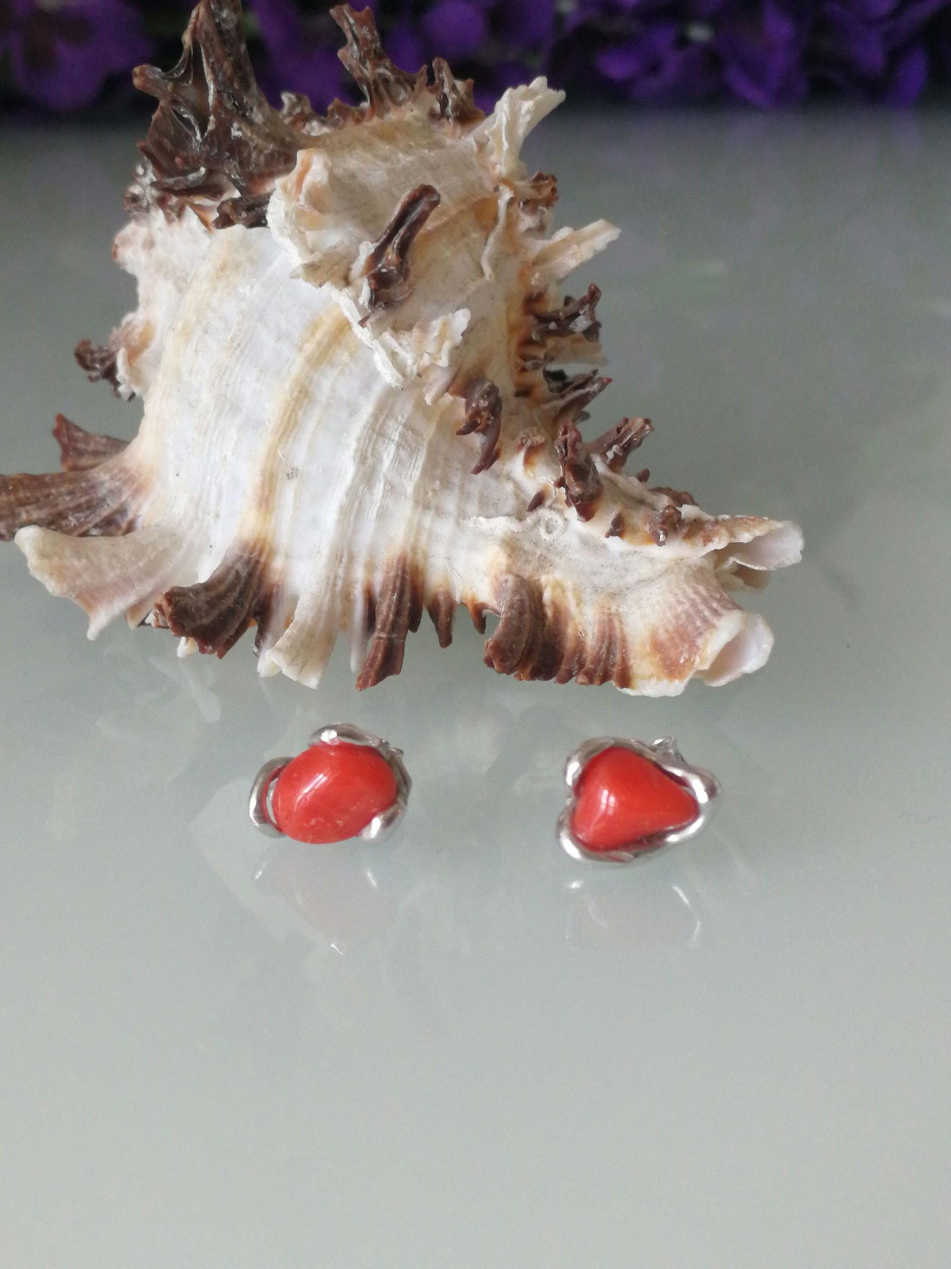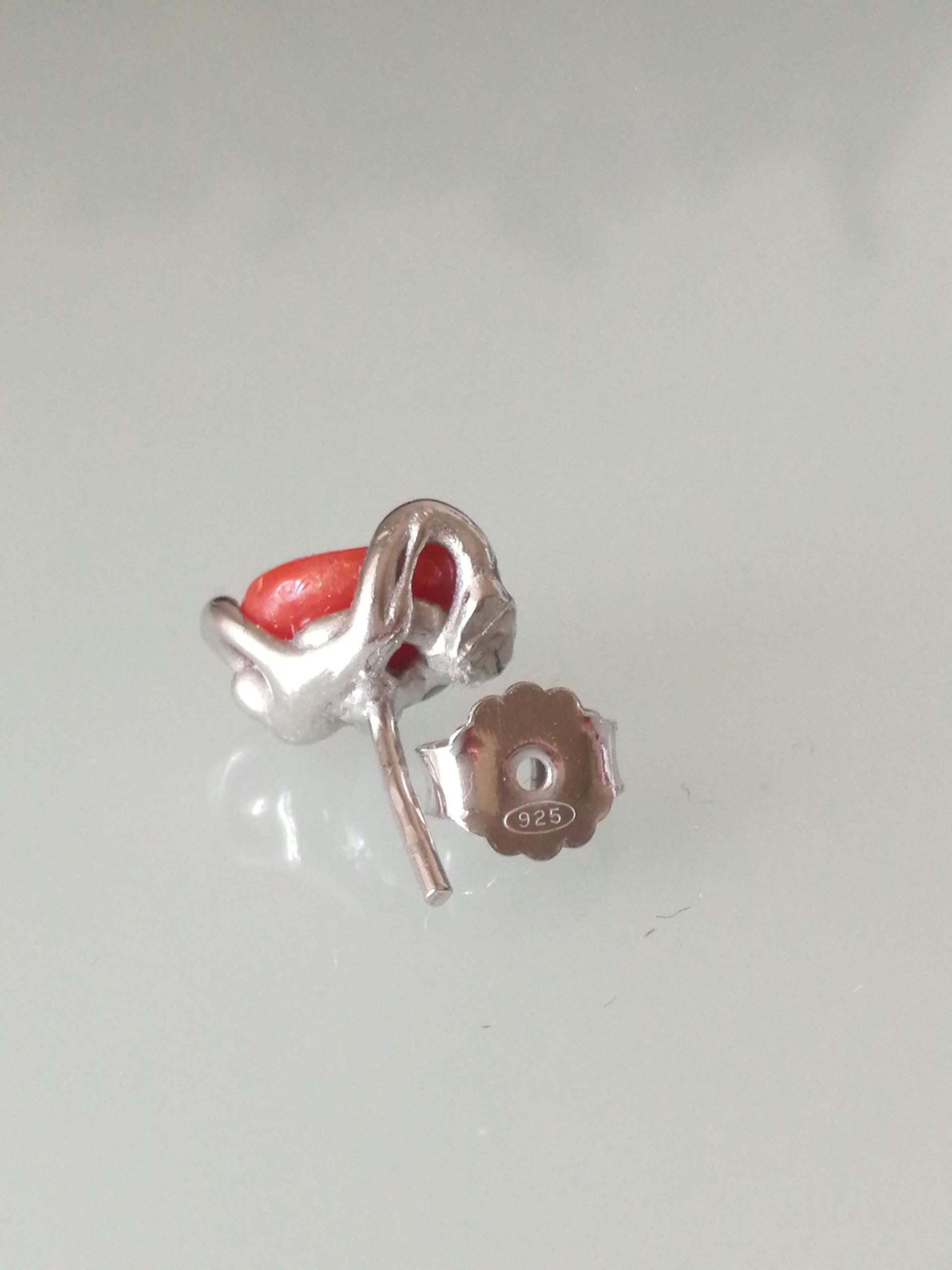 Orecchini corallo rosso del mediterraneo. Orecchini argento.Vero corallo rosso naturale.