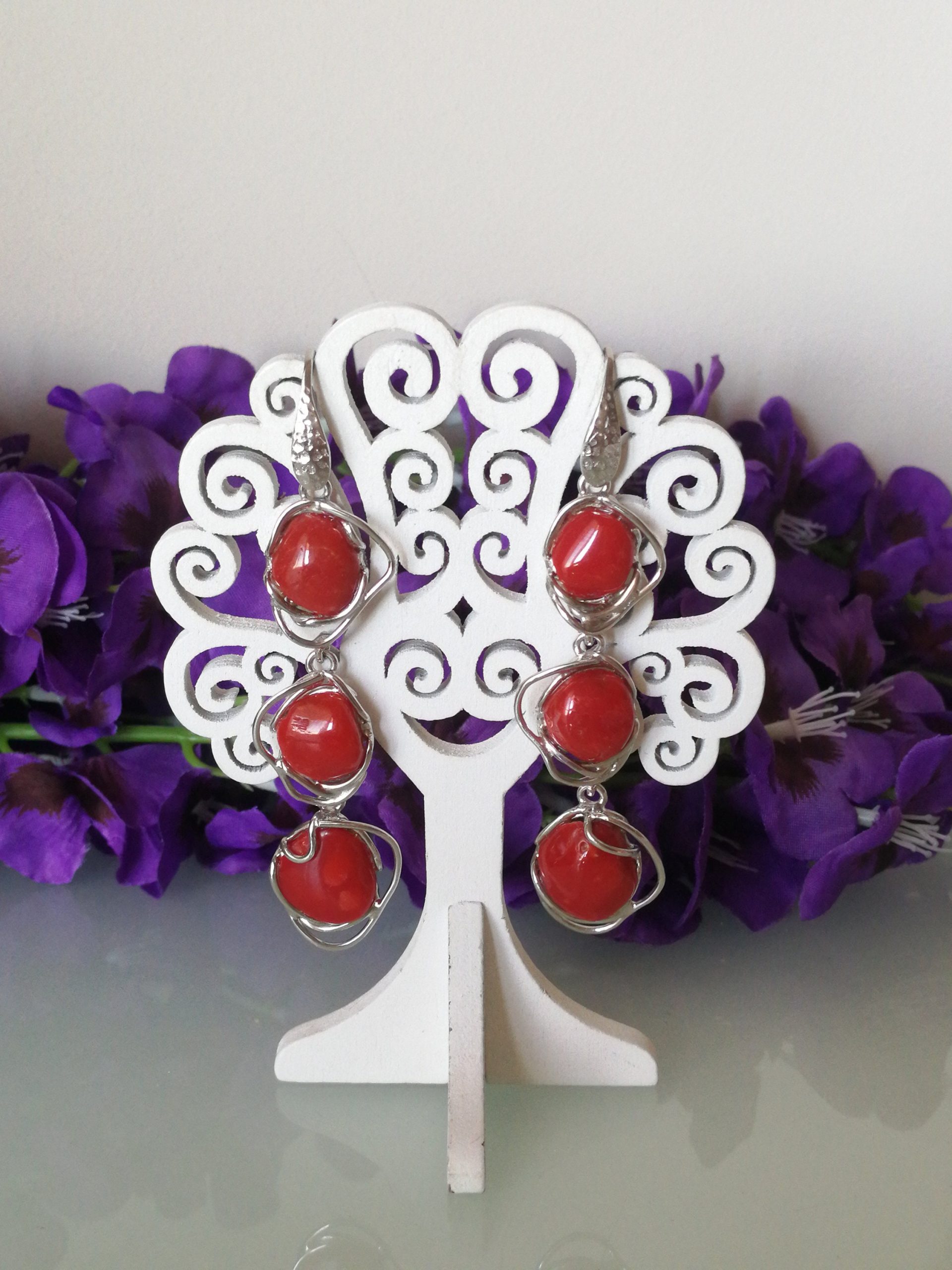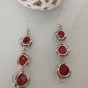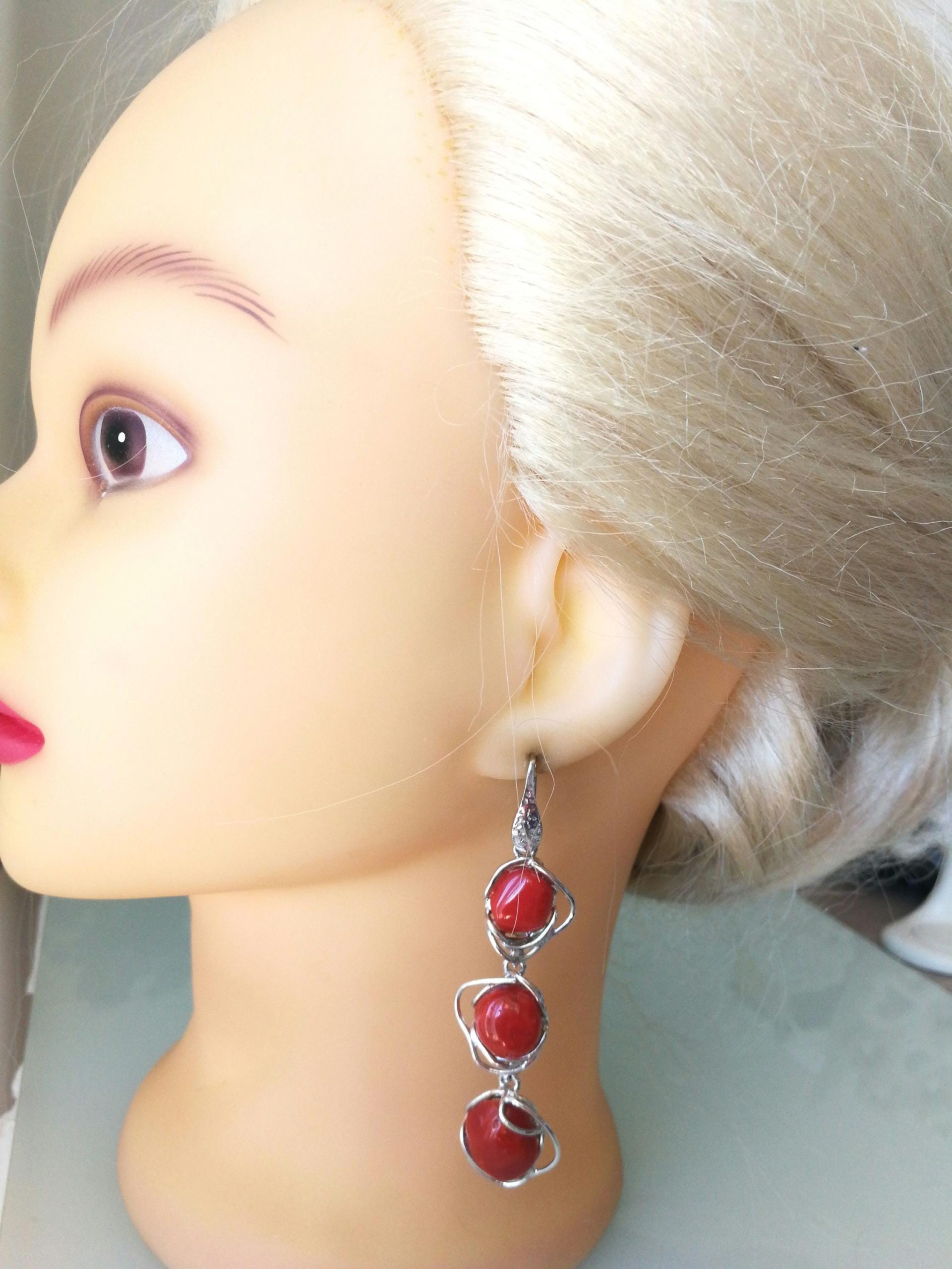 Orecchini corallo rosso del mediterraneo. Orecchini argento.Vero corallo rosso naturale.Gioielli italiani.