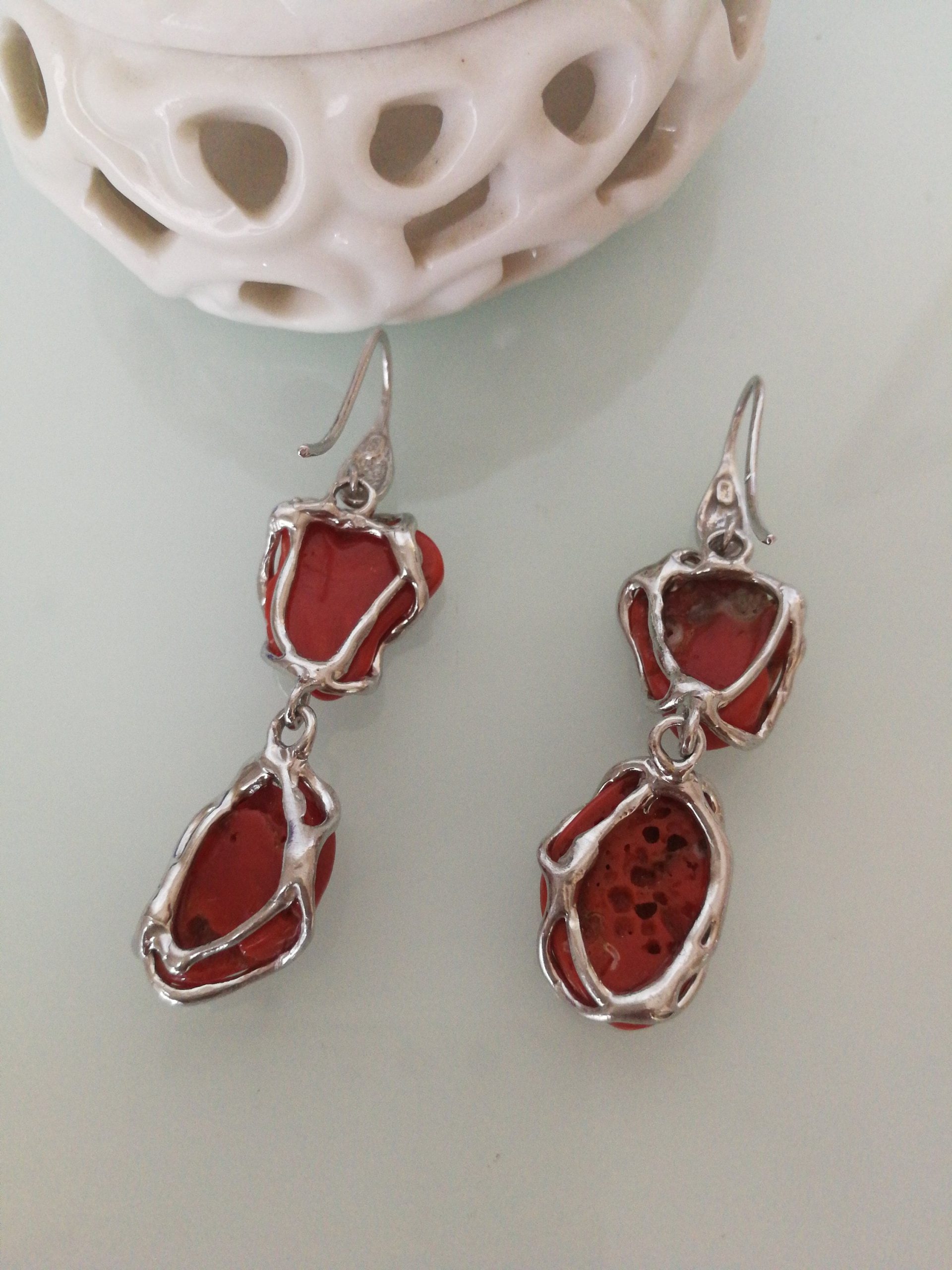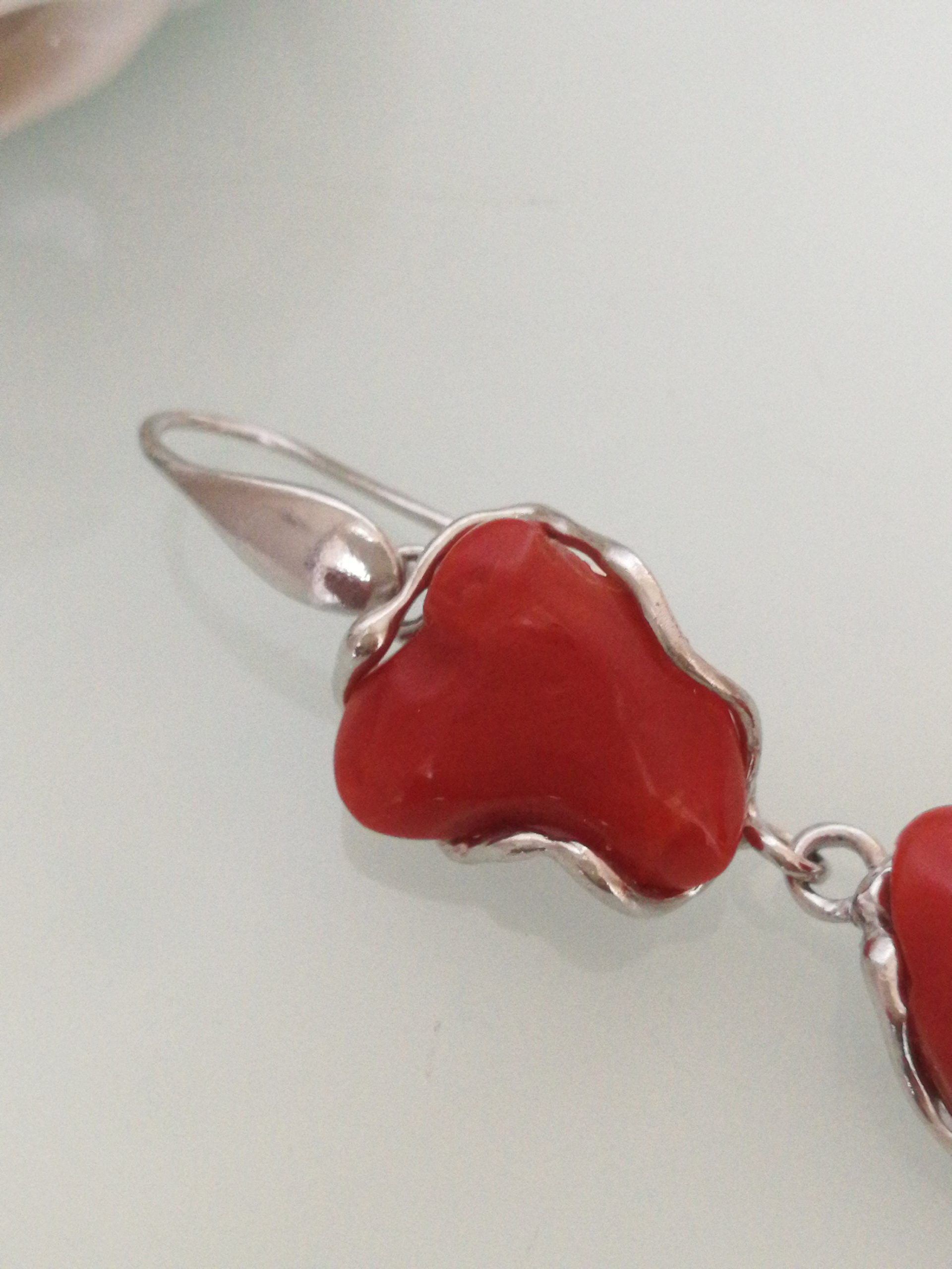 Orecchini corallo rosso naturale mediterraneo intagliato e argento 925 , gioielli italiani