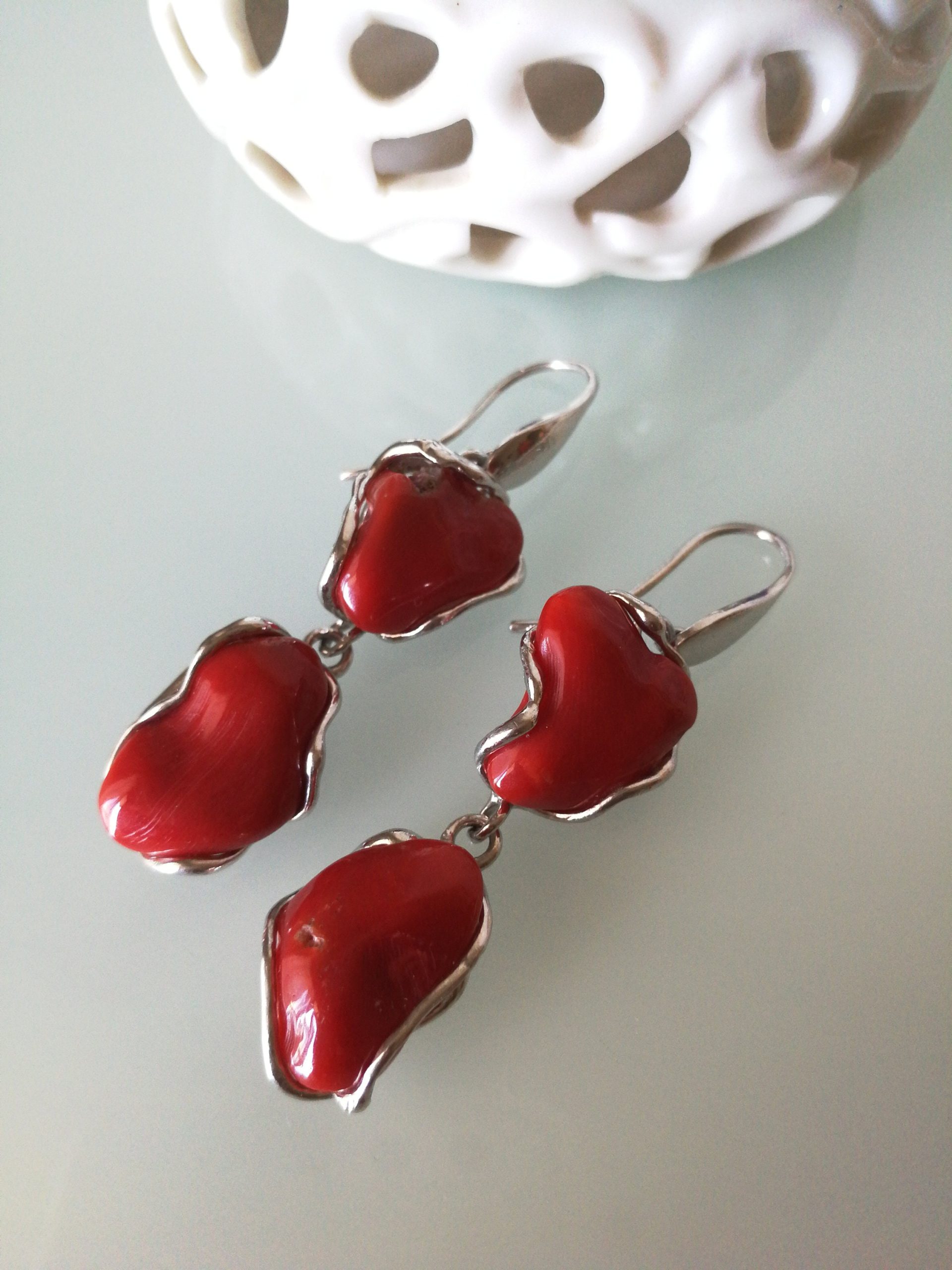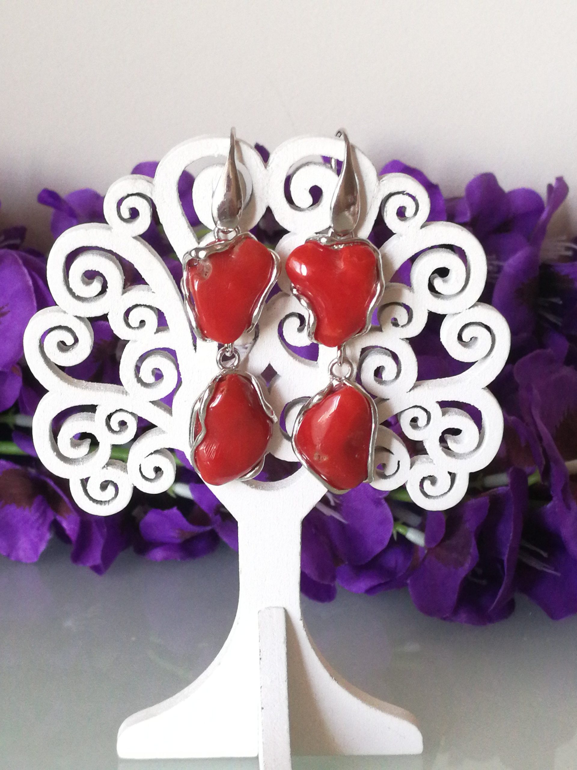 Orecchini corallo rosso del mediterraneo. Orecchini argento.Vero corallo rosso naturale, Gioielli italiani.