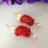 Orecchini corallo rosso mediterraneo, perle bianche con rose rosse , gioielli italiani