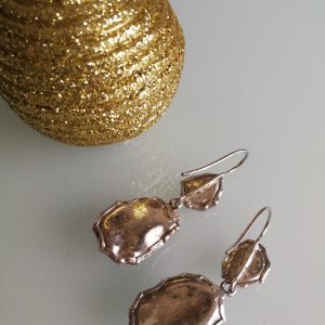 Orecchini  corallo rosa naturale, perle barocche e argento 925 placcato oro, gioielli italiani