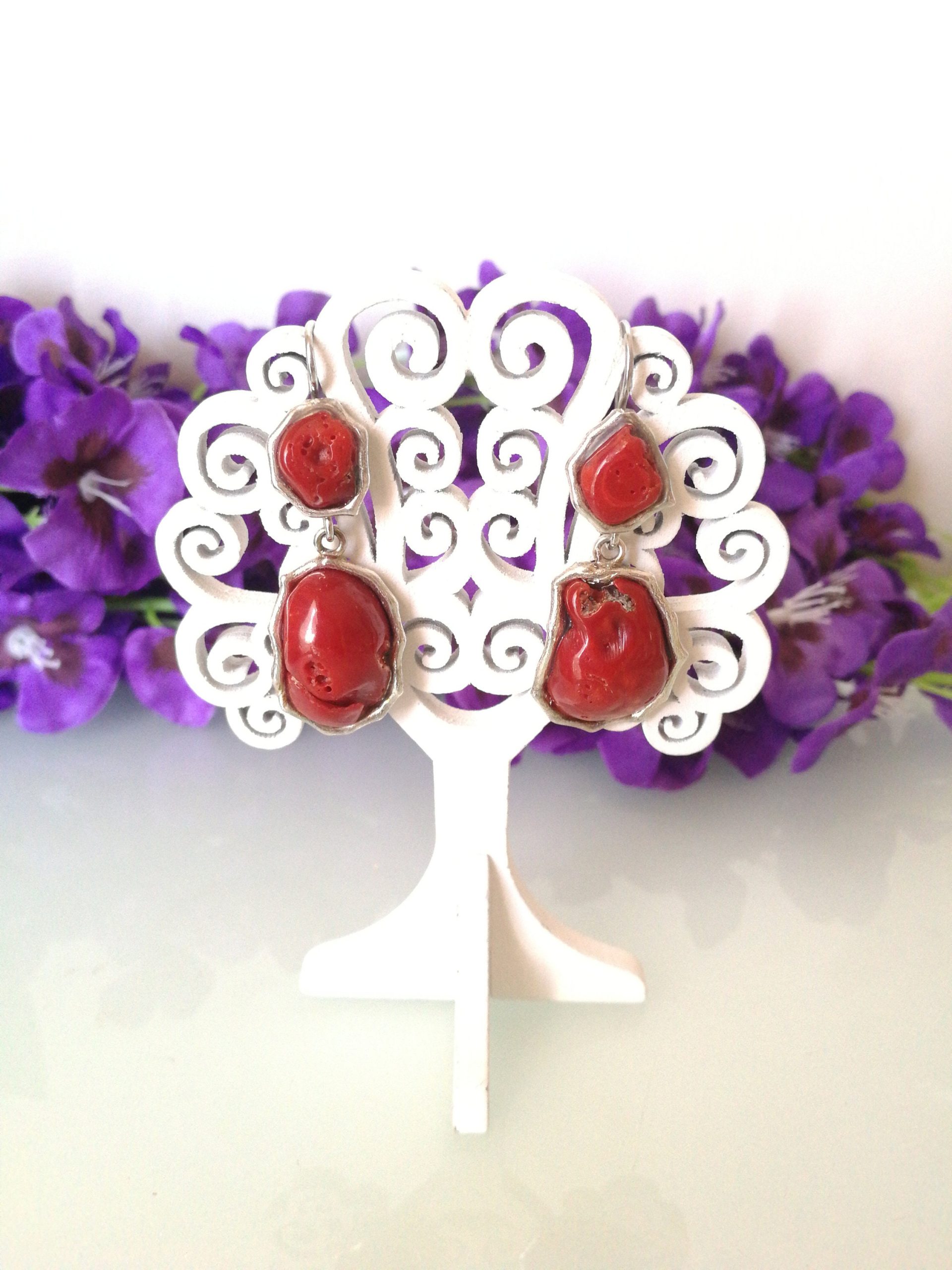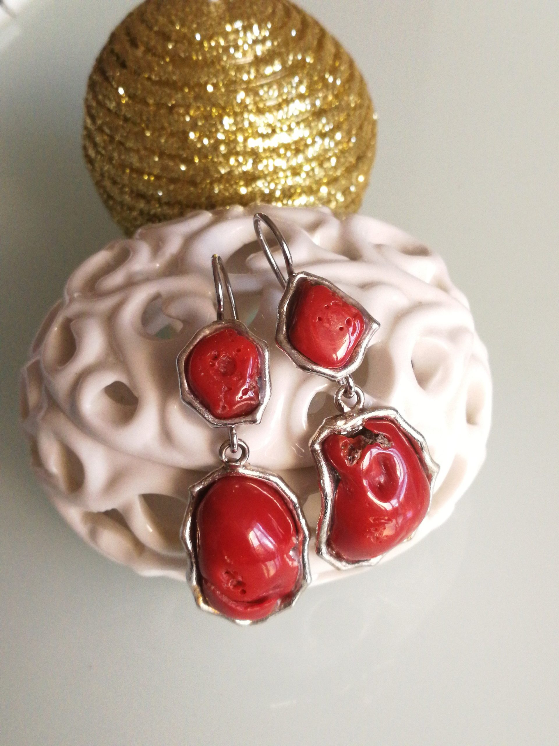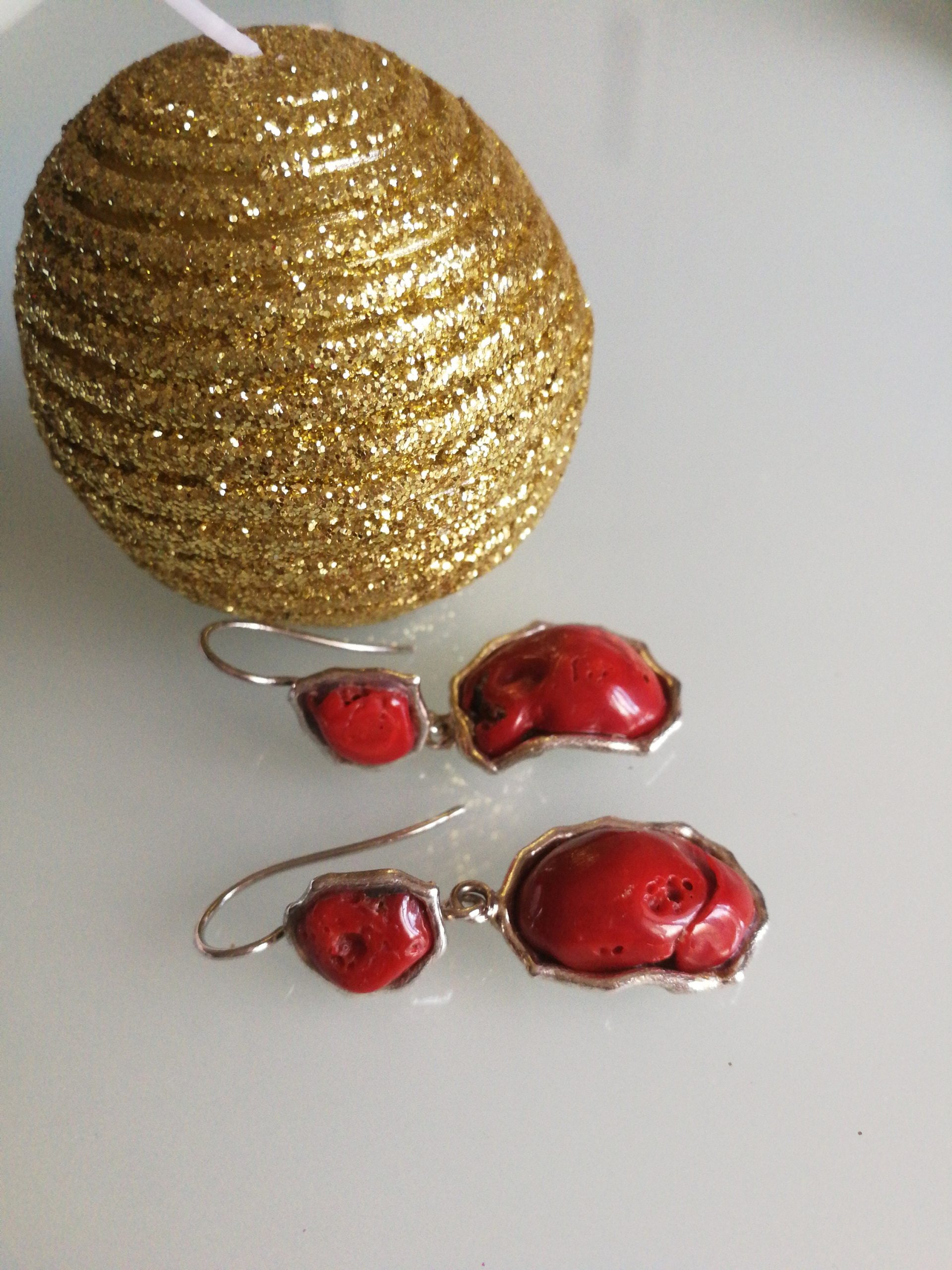 Orecchini corallo rosso del mediterraneo. Orecchini argento.Vero corallo rosso naturale.