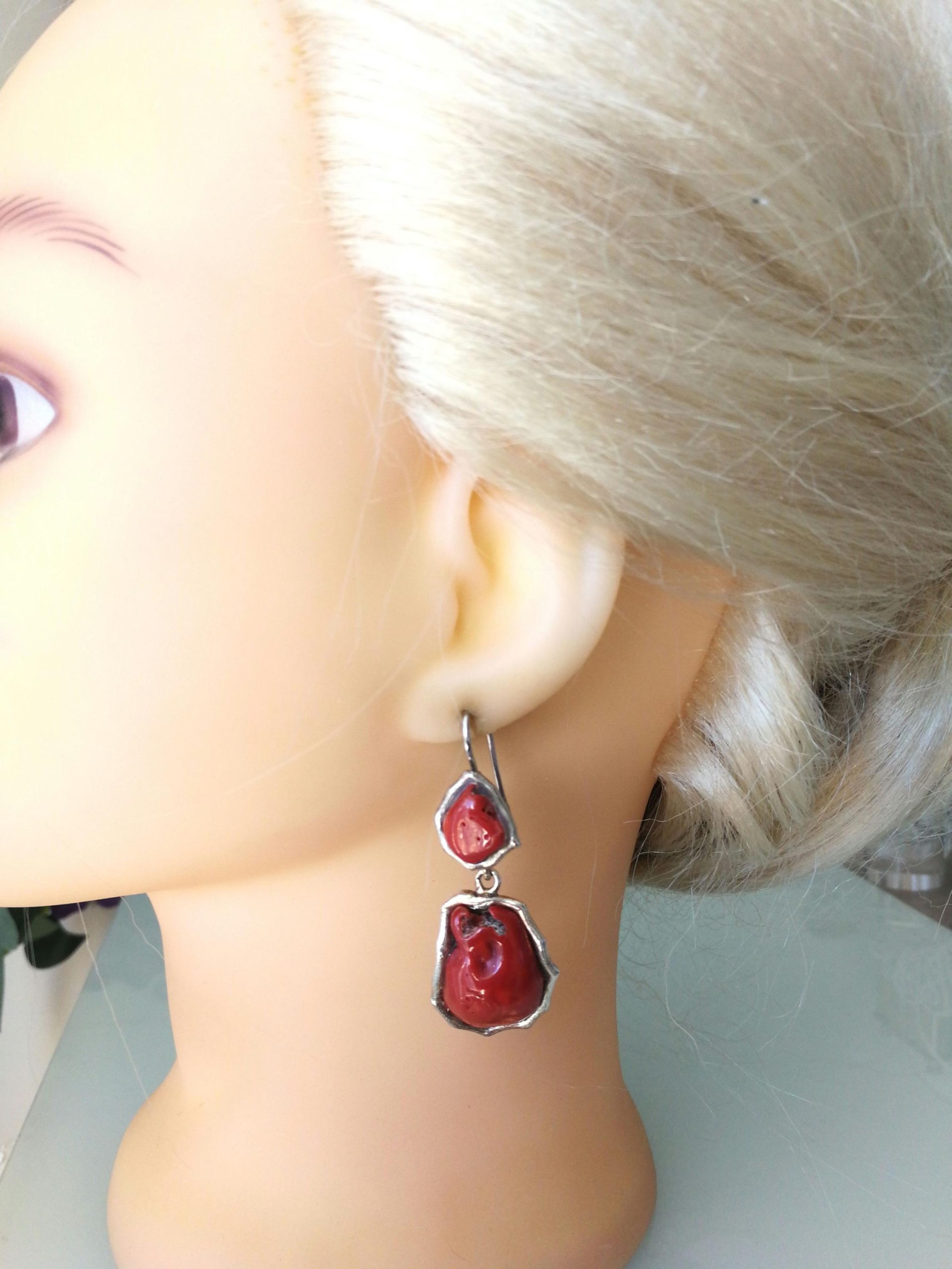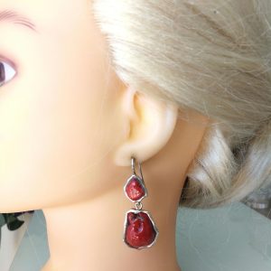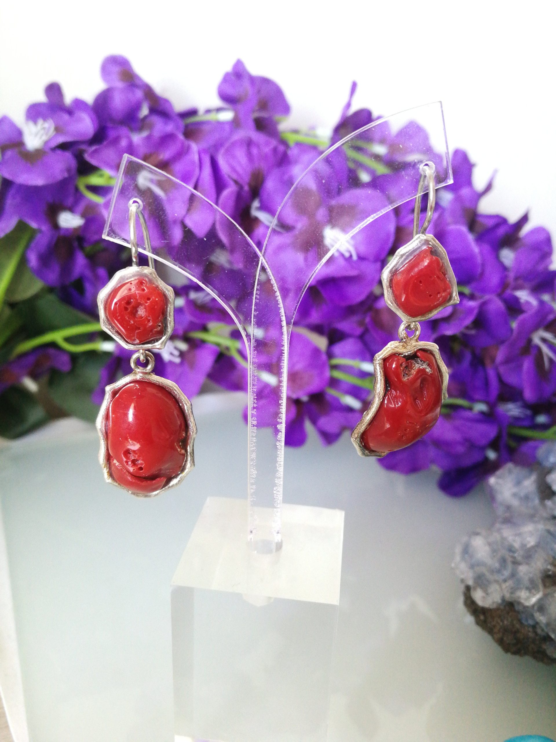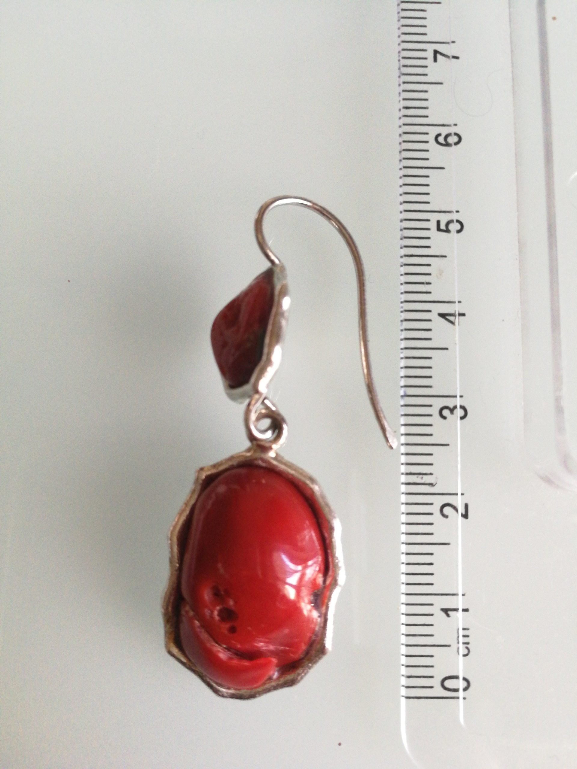 Orecchini corallo rosso del mediterraneo. Orecchini argento.Vero corallo rosso naturale.