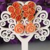 Orecchini corallo rosso mediterraneo, perle bianche con rose bianche , gioielli italiani