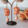 Orecchini  corallo rosso mediterraneo , orecchini fiore, gioielli italiani