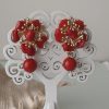 Orecchini corallo rosso mediterraneo e perle pasta di corallo rosso , orecchini fiori , orecchini pendenti