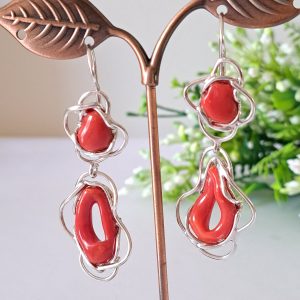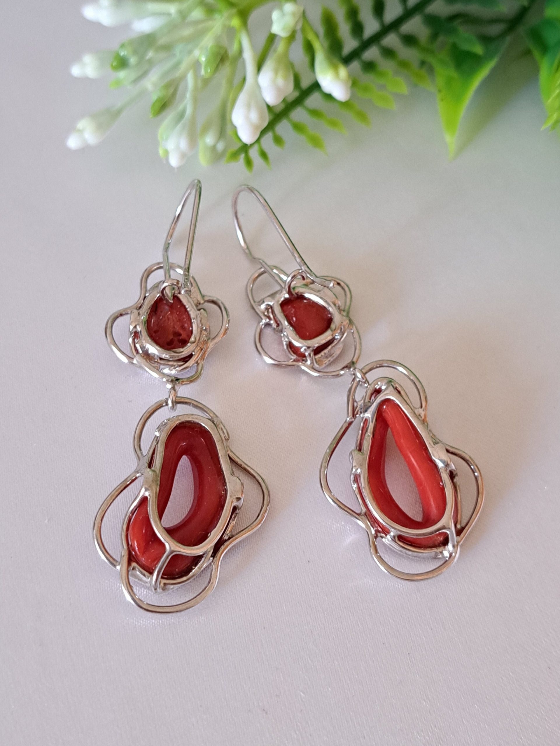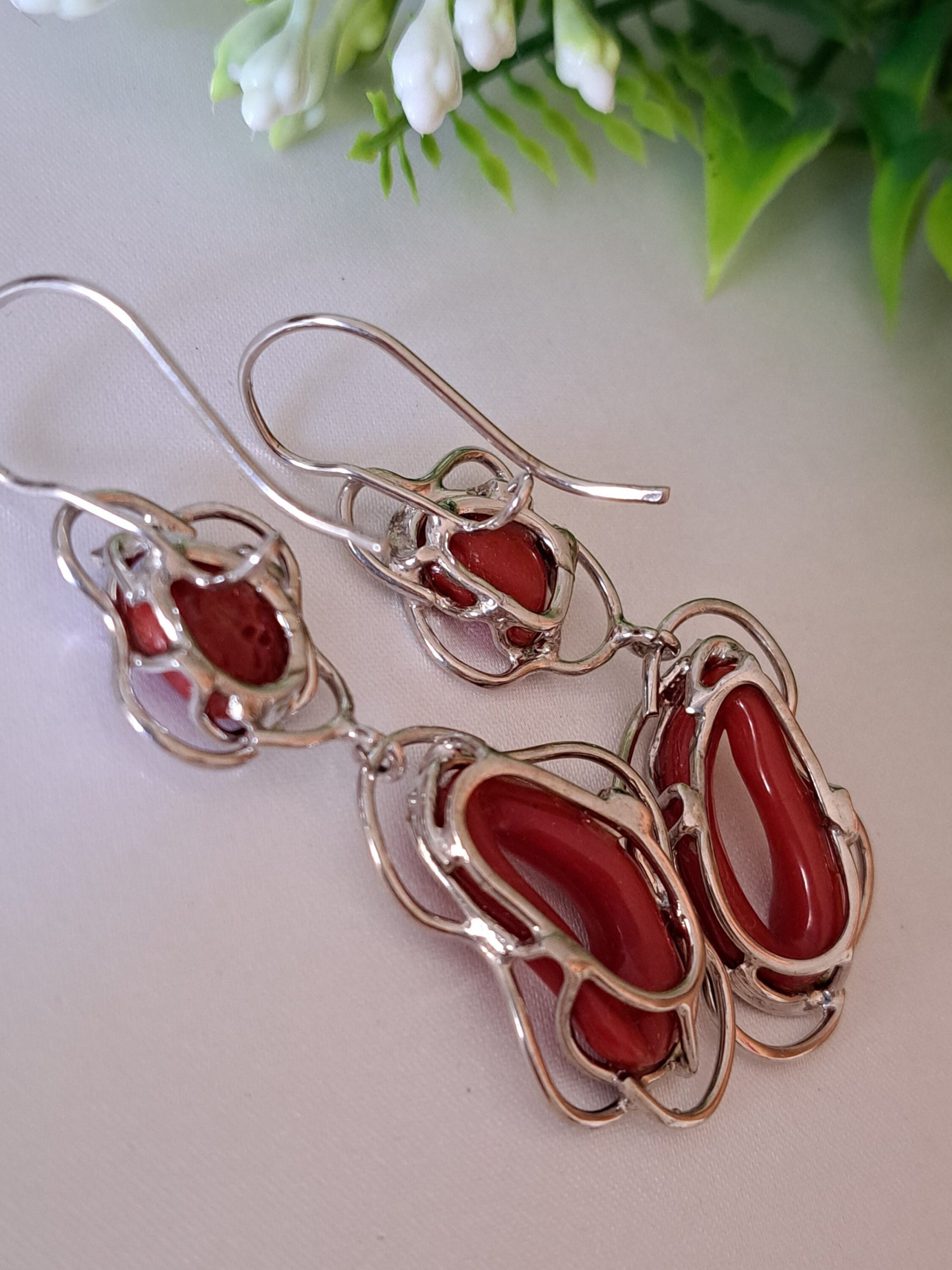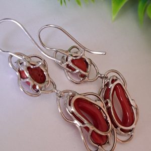 Orecchini artigianali con corallo rosso naturale del mediterraneo di prima scelta , incastonati con argento 925