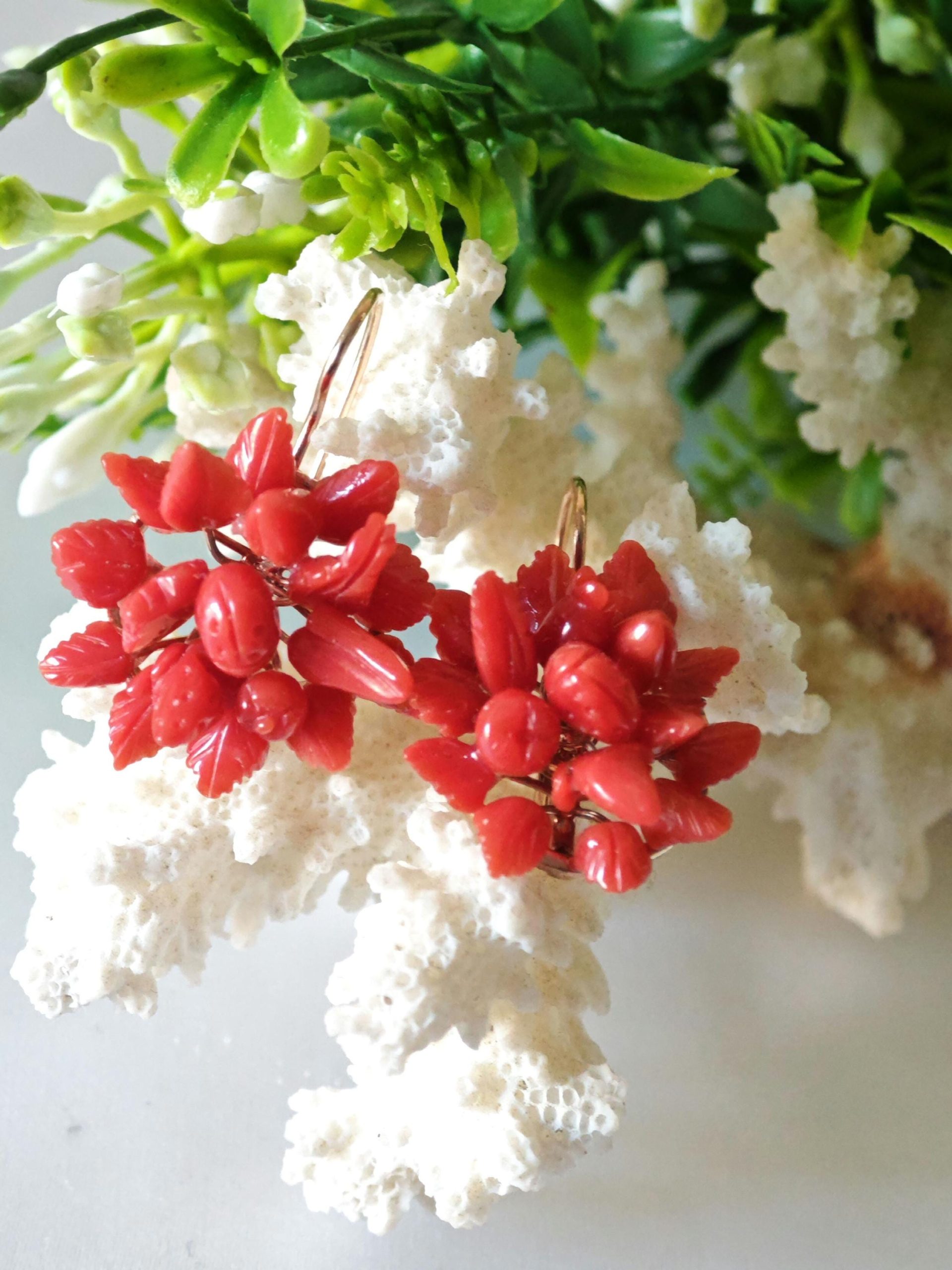 Orecchini corallo rosso naturale mediterraneo intagliato e argento 925 , gioielli italiani