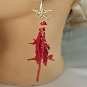Orecchini corallo rosso naturale , orecchini stelle marine argento 925 , gioielli italiani