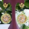 Orecchini ceramica Caltagirone  , orecchini teste di moro con fiori smaltati, orecchini siciliani