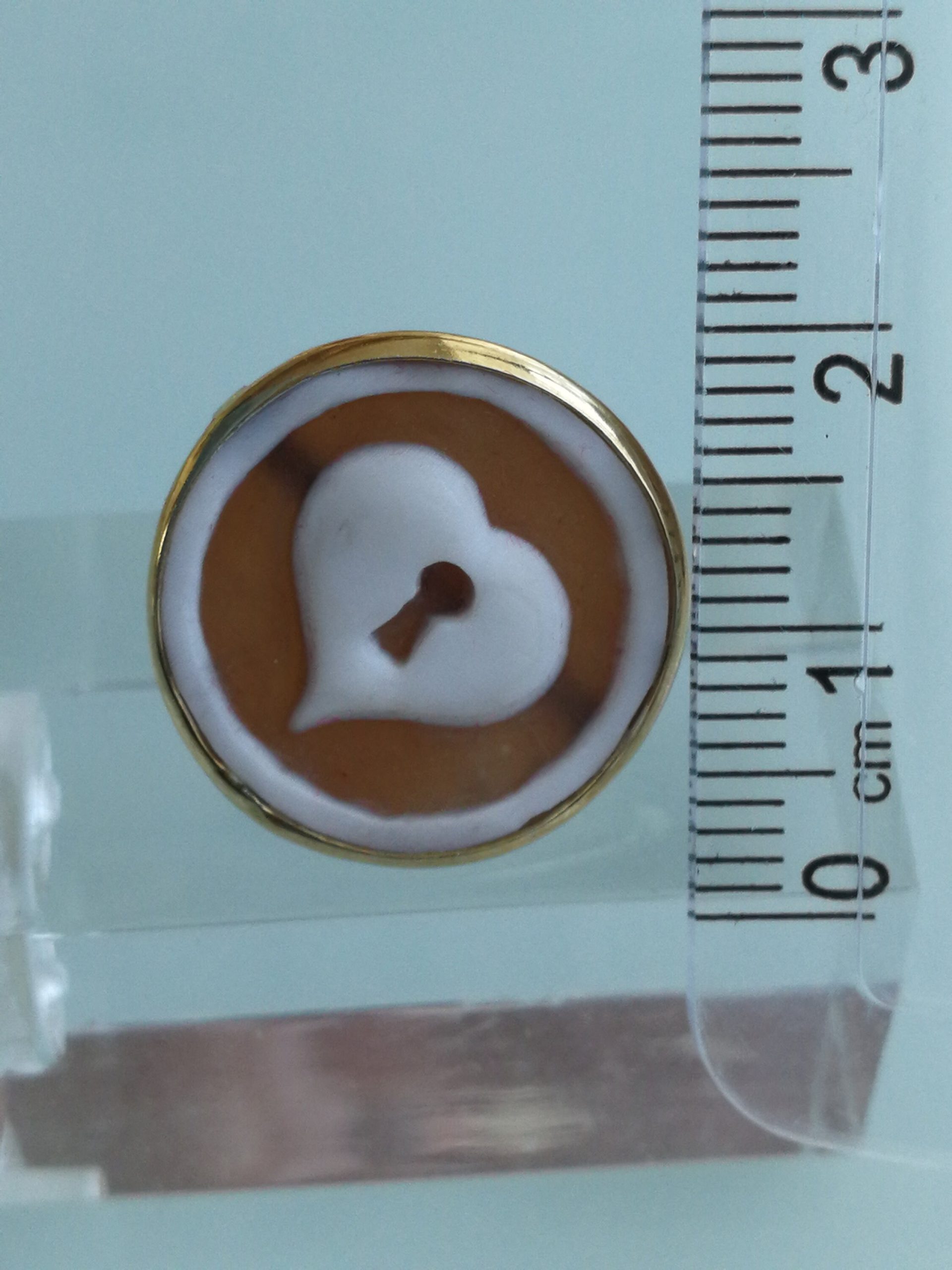 Orecchini eleganti con cammeo conchiglia originale di Torre del Greco Italia ,che raffigura cuore con serratura , montatura in argento placcata oro .Misura diametro 2 cm. Con scatola regalo.