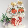 Orecchini con pesci ceramica Caltagirone, corallo rosso naturale e perle bianche, orecchini siciliani