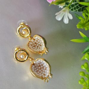 Categoria: Orecchini Pietre Dure Tag: orecchini_dorati, orecchini_handmade, orecchini_melograno, orecchini_pendenti, orecchini_perle, perle_bianche, portafortuna