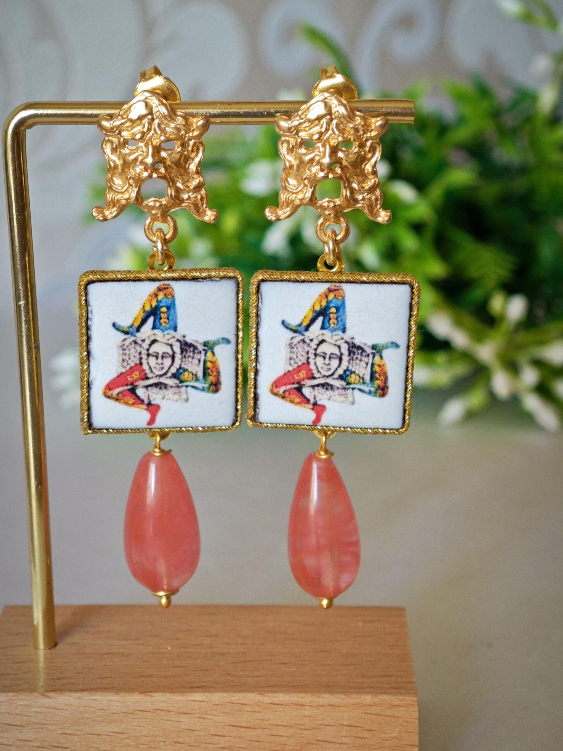 Categoria: Orecchini Piastrelle Tag: ceramica_Caltagirone, orecchini_ceramica, orecchini_goccia, orecchini_maschera, orecchini_ottone, orecchini_pendenti, orecchini_quarzo, orecchini_rosa, orecchini_siciliani, pietra_lavica, quarzo_rosa