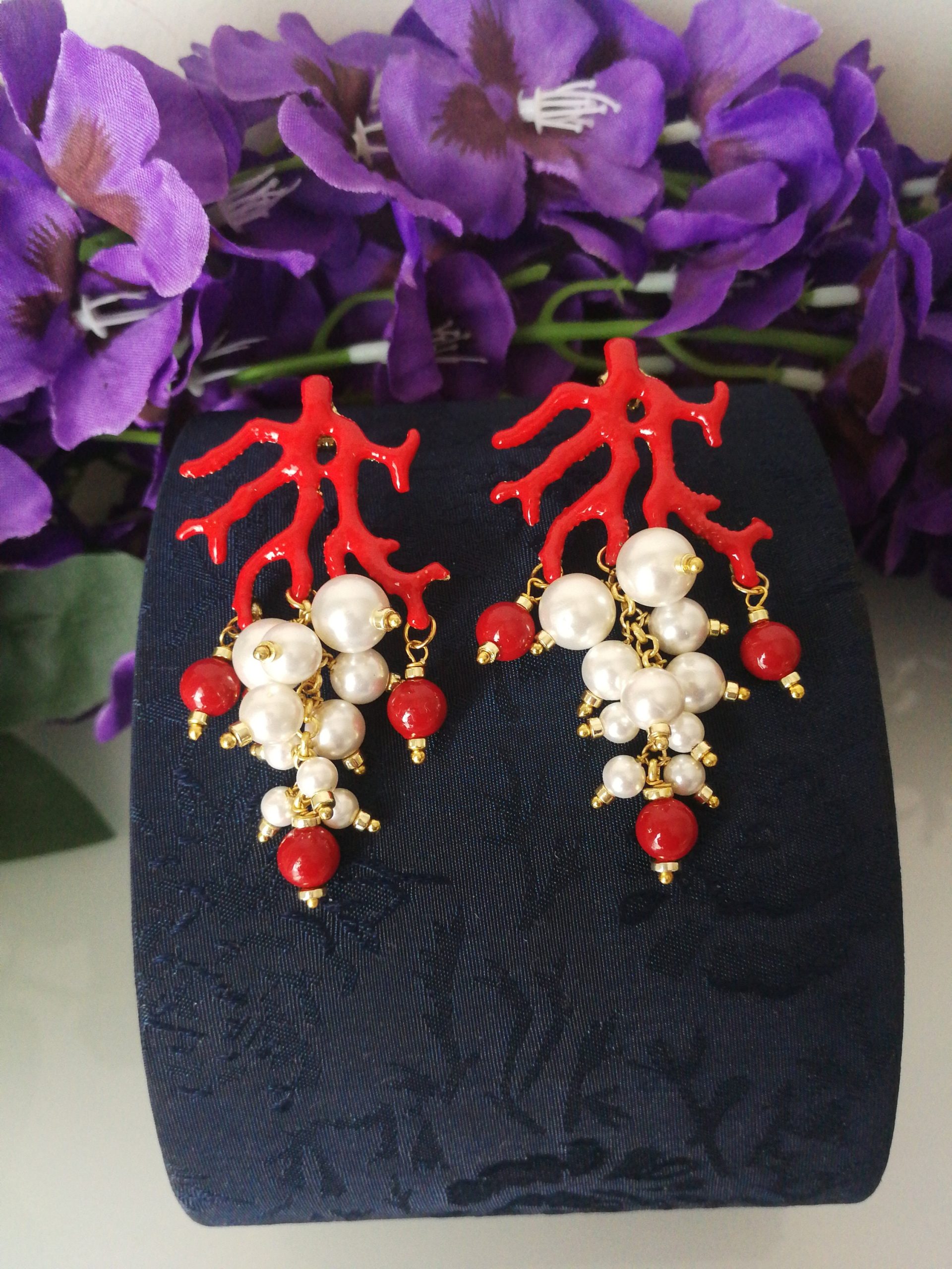 Categoria: Orecchini Corallo Tag: Corallo rosso, Orecchini argento, Orecchini corallo, Orecchini eleganti, Orecchini perle, Perla naturale, Perla nera