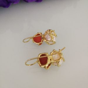 Orecchini corallo rosso mediterraneo , orecchini fiore, gioielli italiani