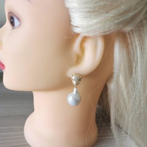 Orecchini perle barocche bianche e argento con zirconi, gioielli italiani