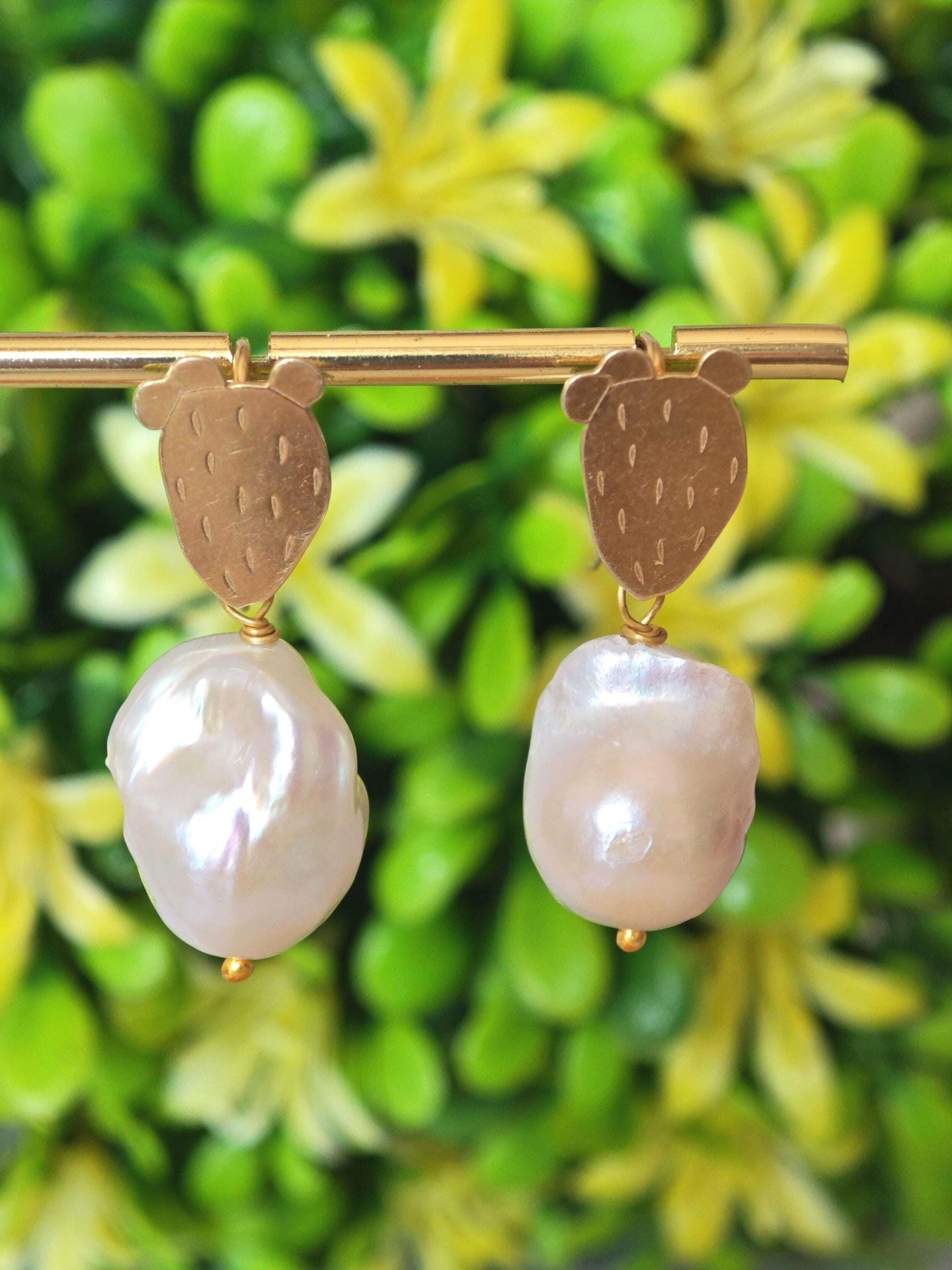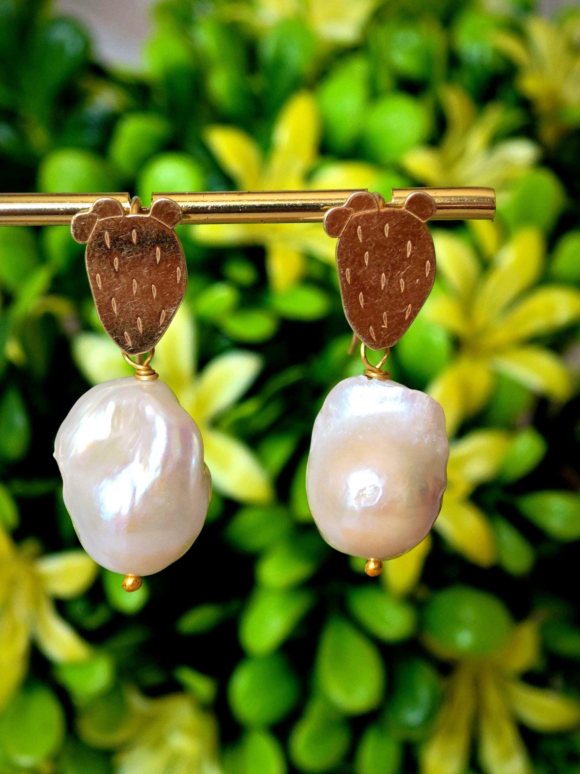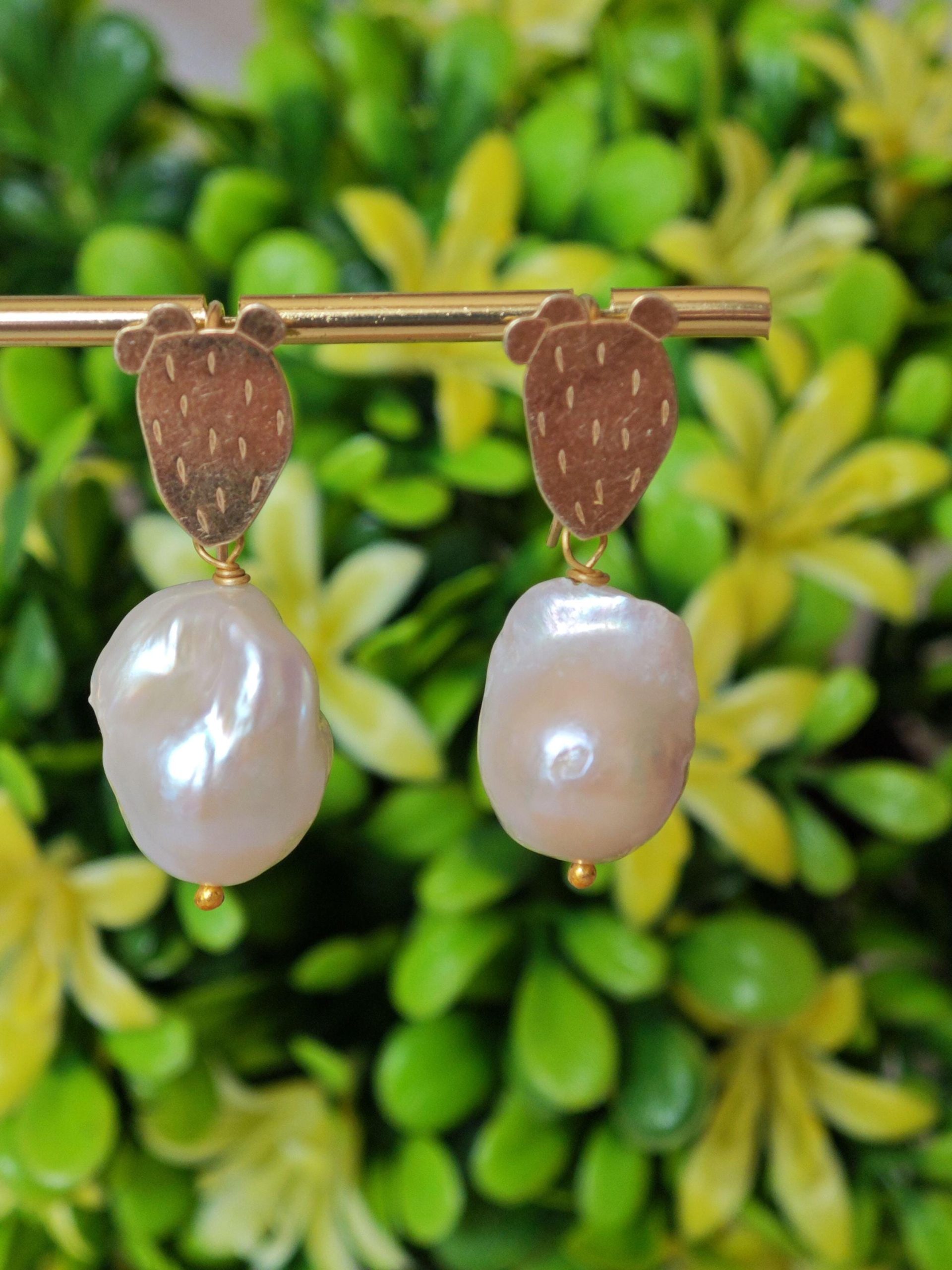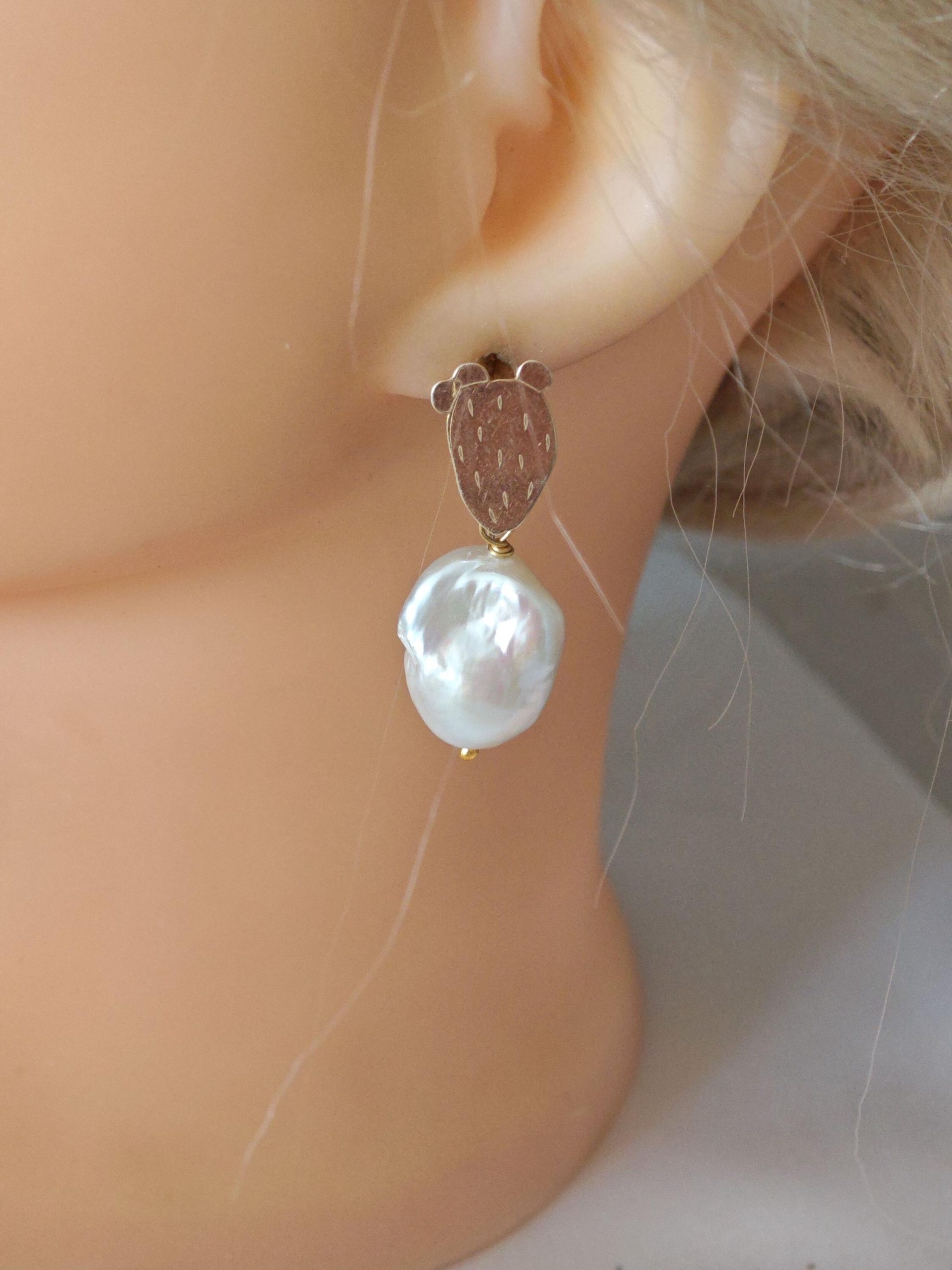 Orecchini perle barocche bianche e cactus argento 925 placcato oro, gioielli italiani