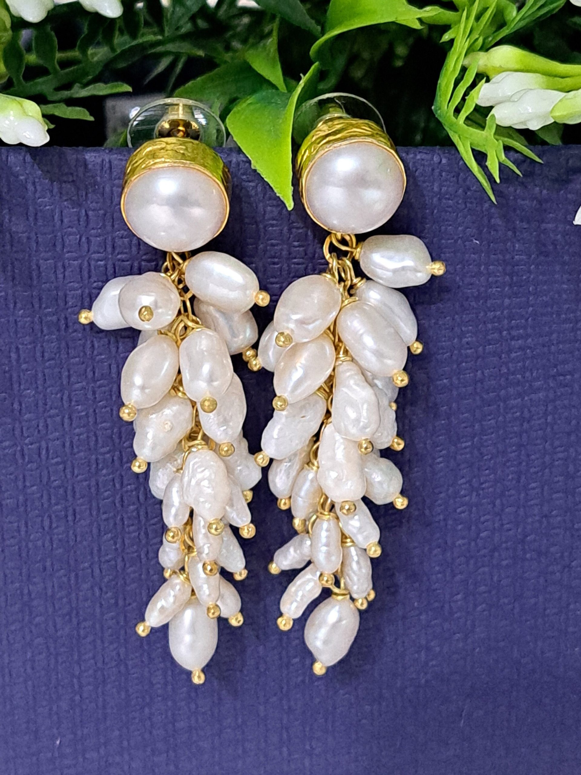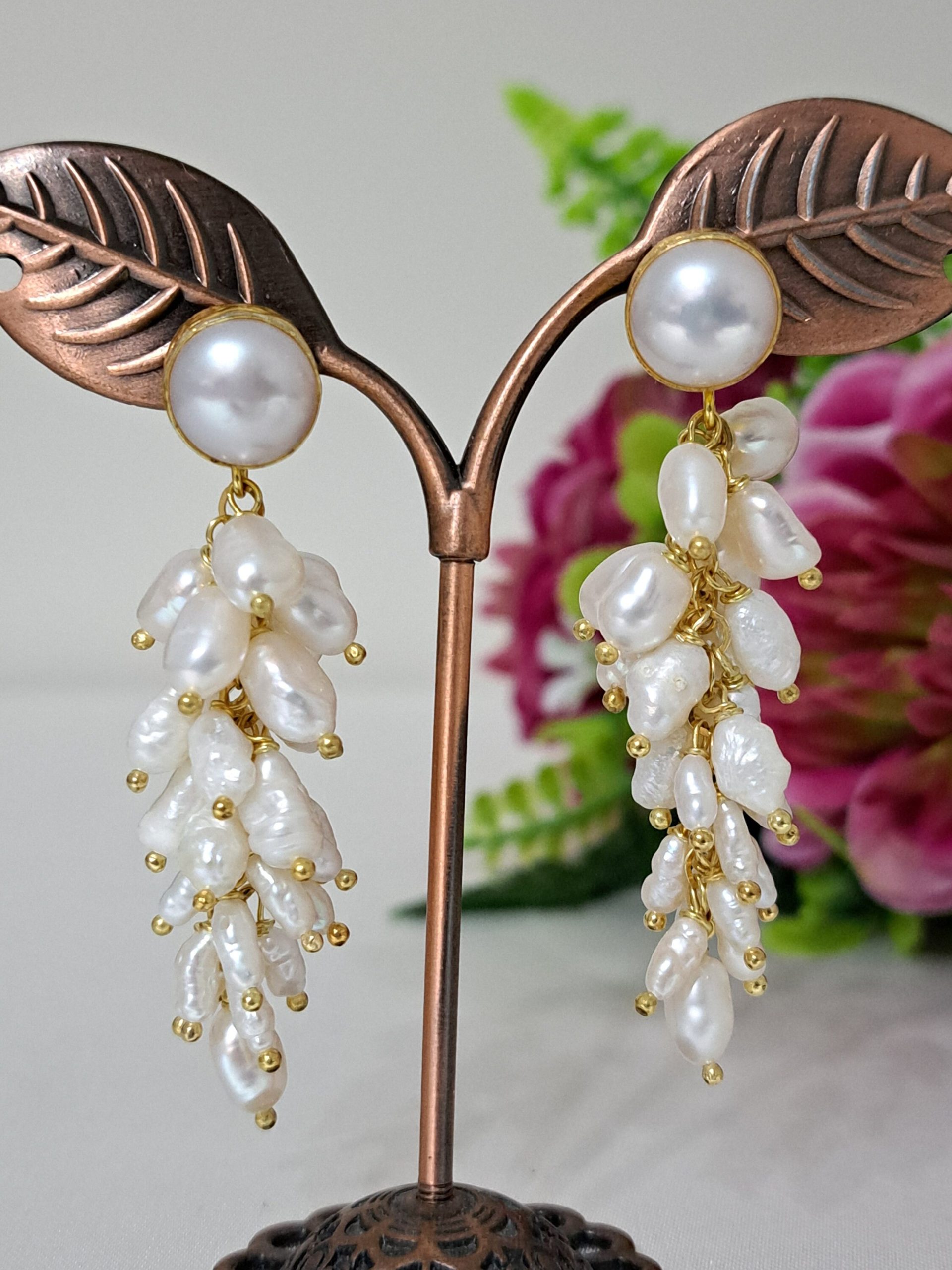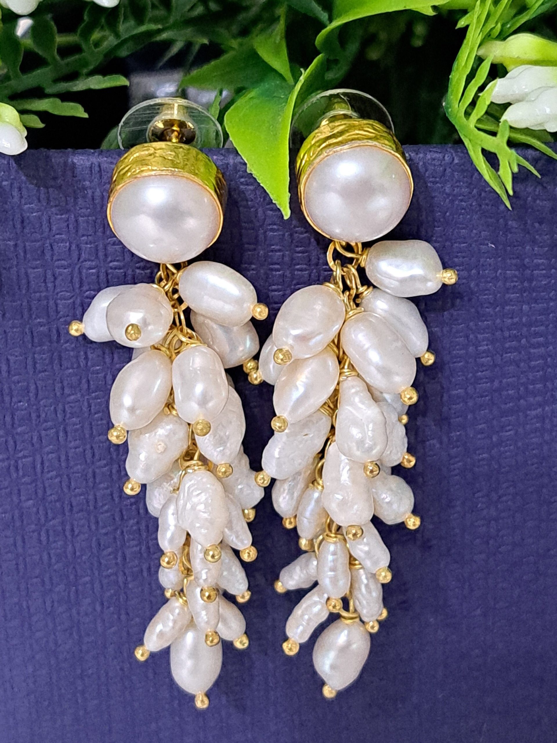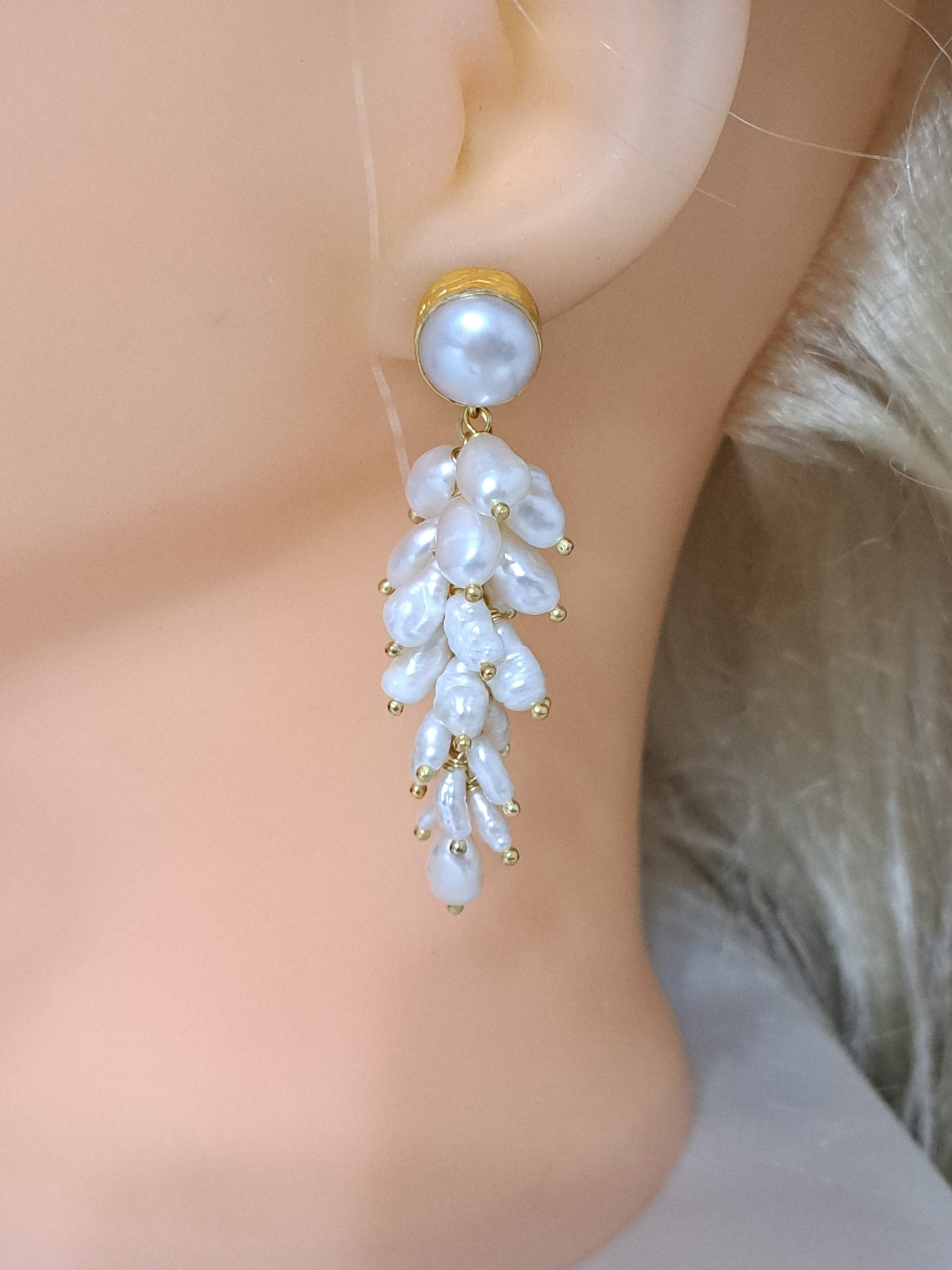 Orecchini perle barocche bianche , orecchini grappolo,gioielli italiani